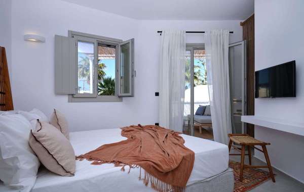 A luxury bright stylish modern villa on the Greek island of Paros sounds like a wonderful vacation destination. The villa is decorated with all natural colors and fabrics, giving it a warm and inviting feel. The property boasts a jacuzzi, as well as three patio balconies that provide stunning views of the surrounding area. There is also an outdoor lounge area and outdoor dining area, perfect for relaxing and enjoying the Mediterranean climate. The villa is located on the island of Paros, known for its crystal clear waters and beautiful beaches. It is just a short walk from the center of the cosmopolitan Naoussa village, but still offers a sense of privacy and seclusion. It would be a perfect place to get away from it all and unwind in style.