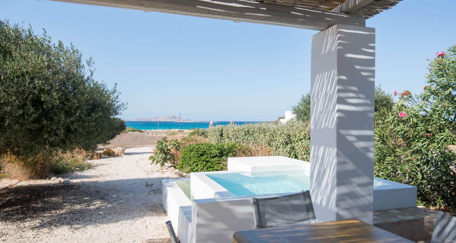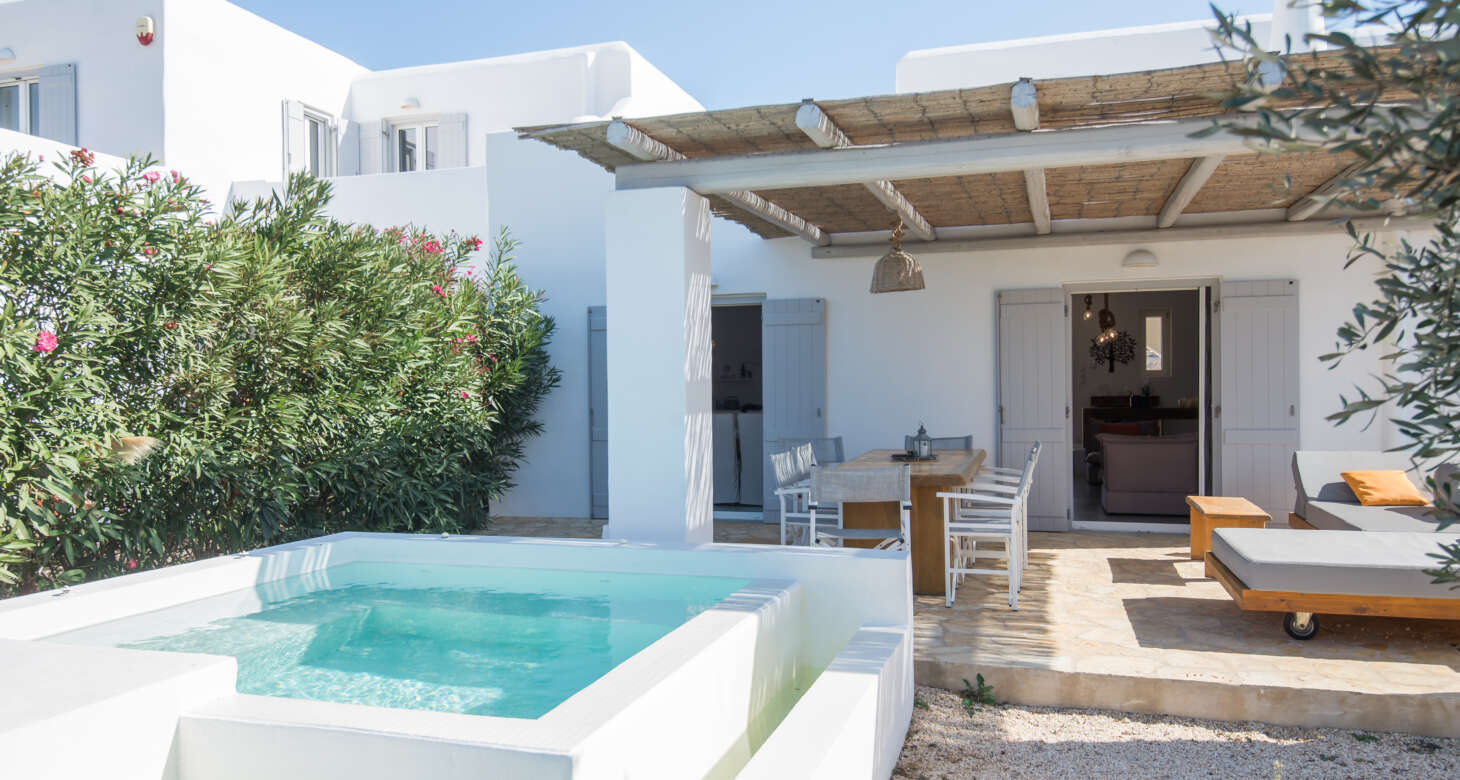 Villa Hemera which means “day” in Greek is a luxurious property that is part of three villas located within a connected plot of 9000sqm. The villa features a shared pool and barbecue area, as well as private mini pools that are fully operational.