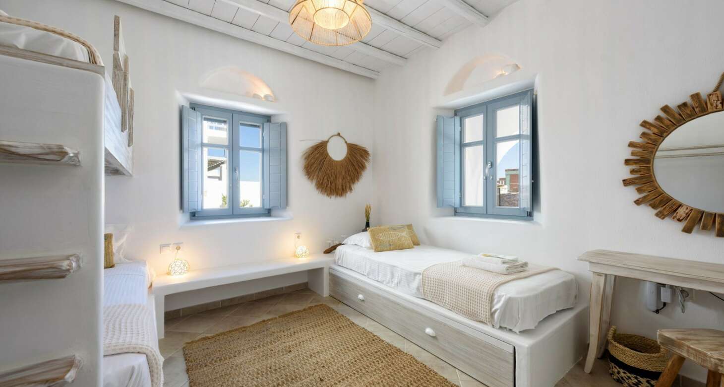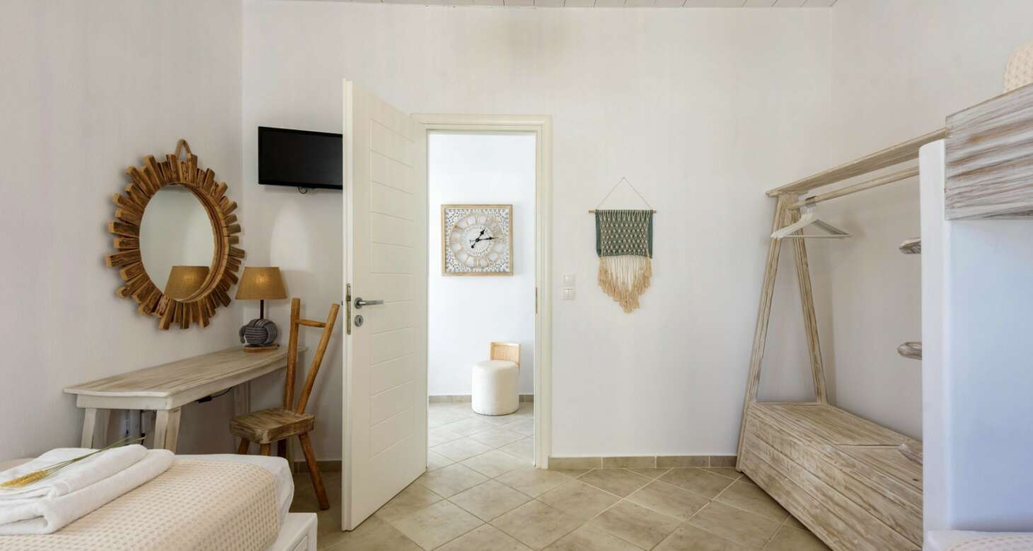 Overall, Villa Antheia I in Dryos is a perfect choice for those who want to experience a unique blend of boho style and traditional island charm. The villa offers ample space for relaxation and entertainment, ensuring that guests can make the most of their vacation on this beautiful Greek island.