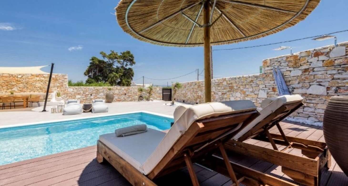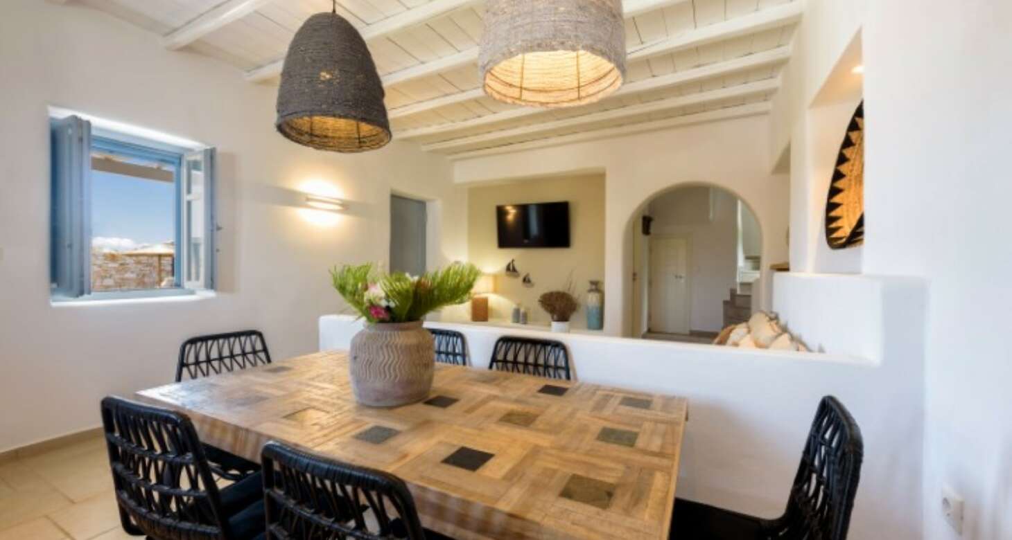 Overall, Villa Antheia II in Dryos is a perfect choice for those seeking a unique blend of boho style and traditional island charm. The villa offers ample space for relaxation and entertainment, ensuring that guests can make the most of their stay on this beautiful Greek island.