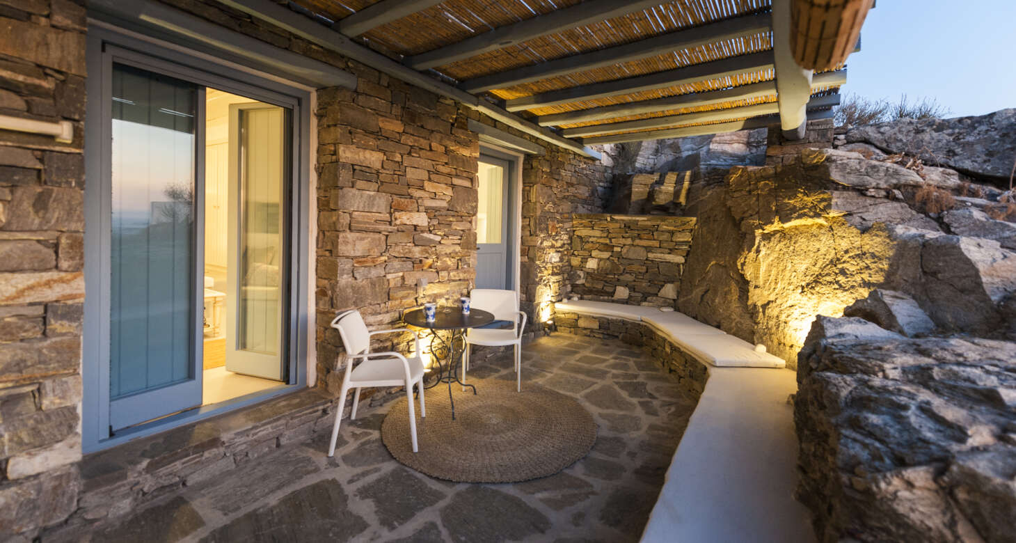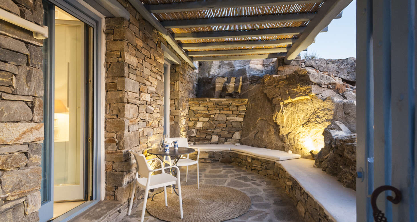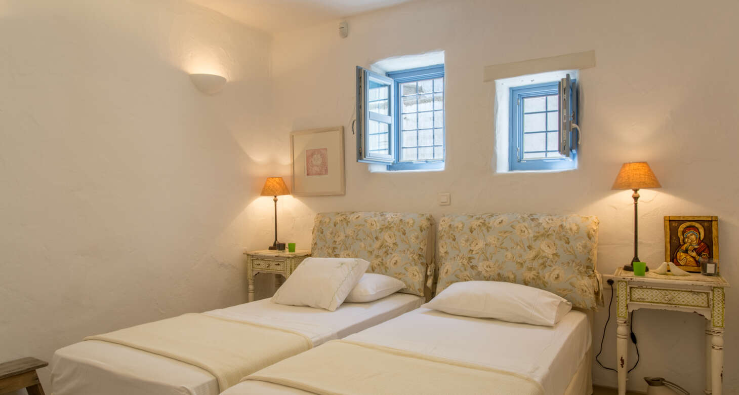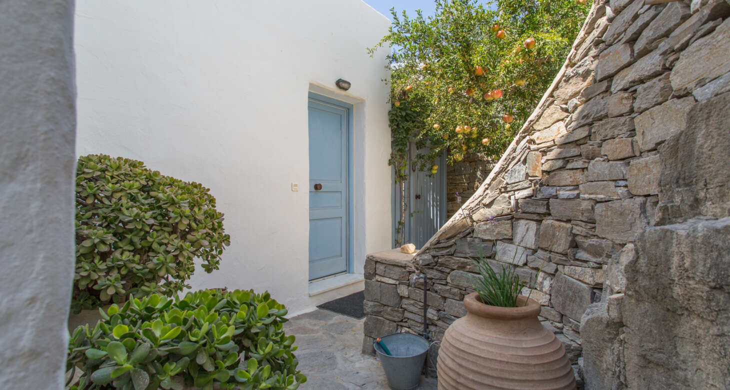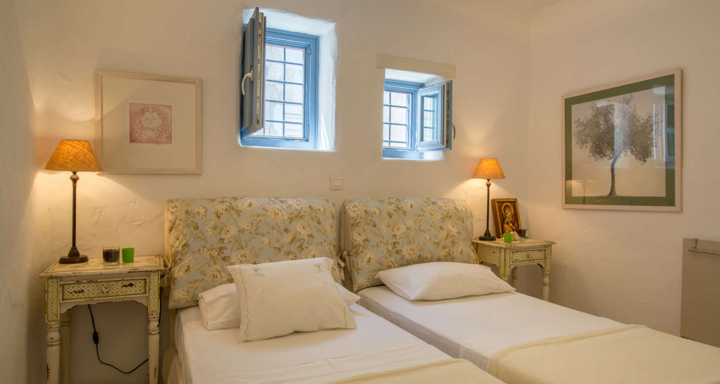 The stunning Villa Gold in Taxiarchaki Paroikia, seamlessly blends traditional island style with modern sophistication. The villa boasts wooden beam ceilings and white-washed walls, adding to the classic Greek island charm. The floors are made of cement mortar, giving the home a contemporary edge.