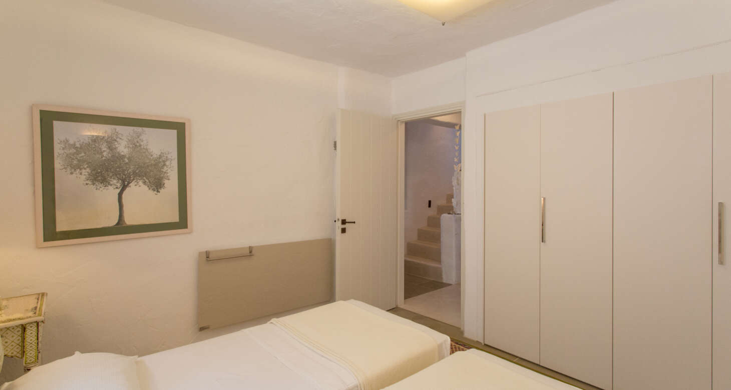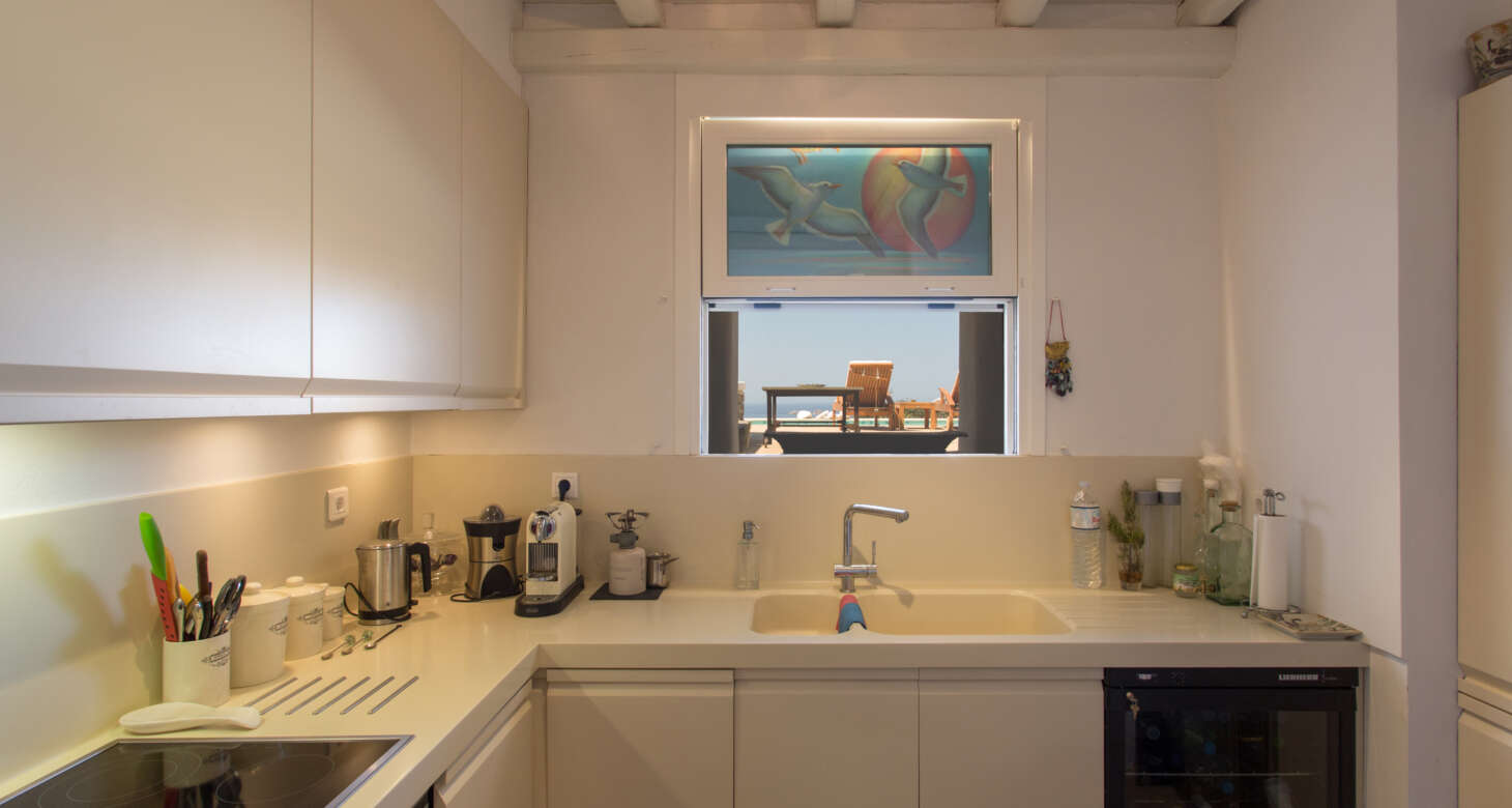 The villa features a sophisticated natural color palette, with wooden floors in the bedrooms and all-white kitchen cabinets. The feeling of a welcoming home is apparent throughout the villa. The four different levels of the villa offer privacy to guests, ensuring that everyone can enjoy their own space.