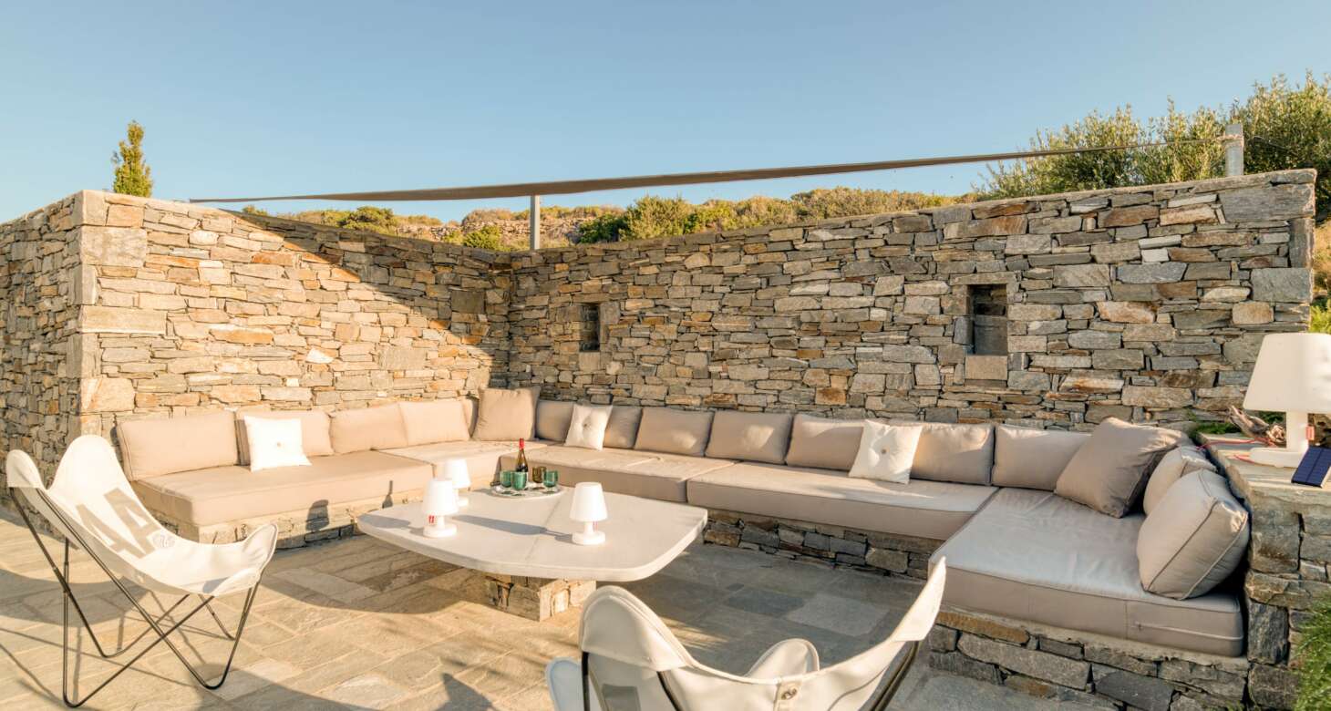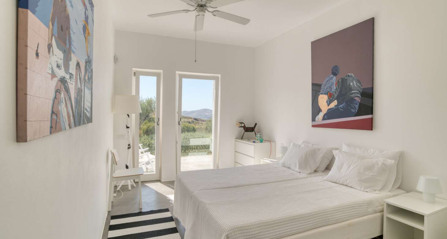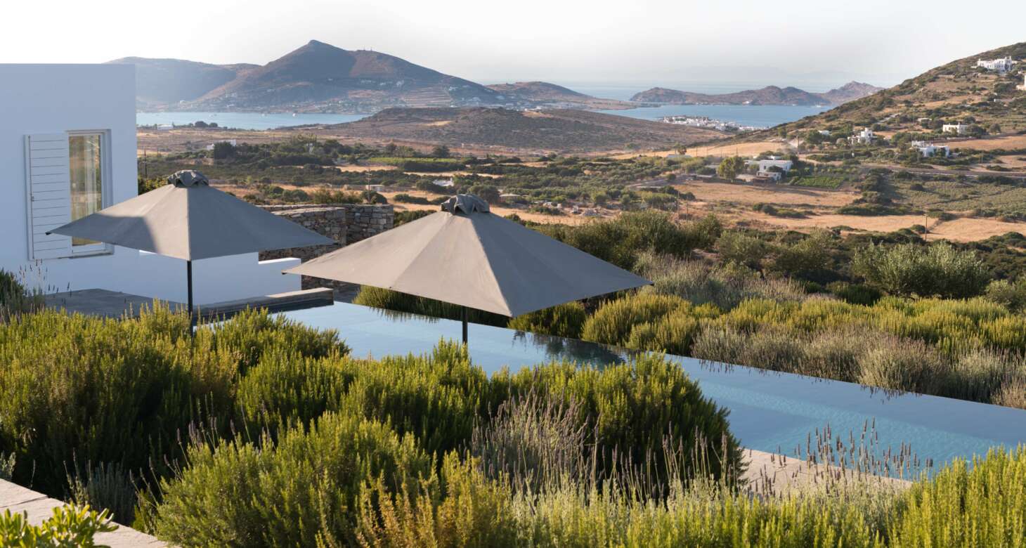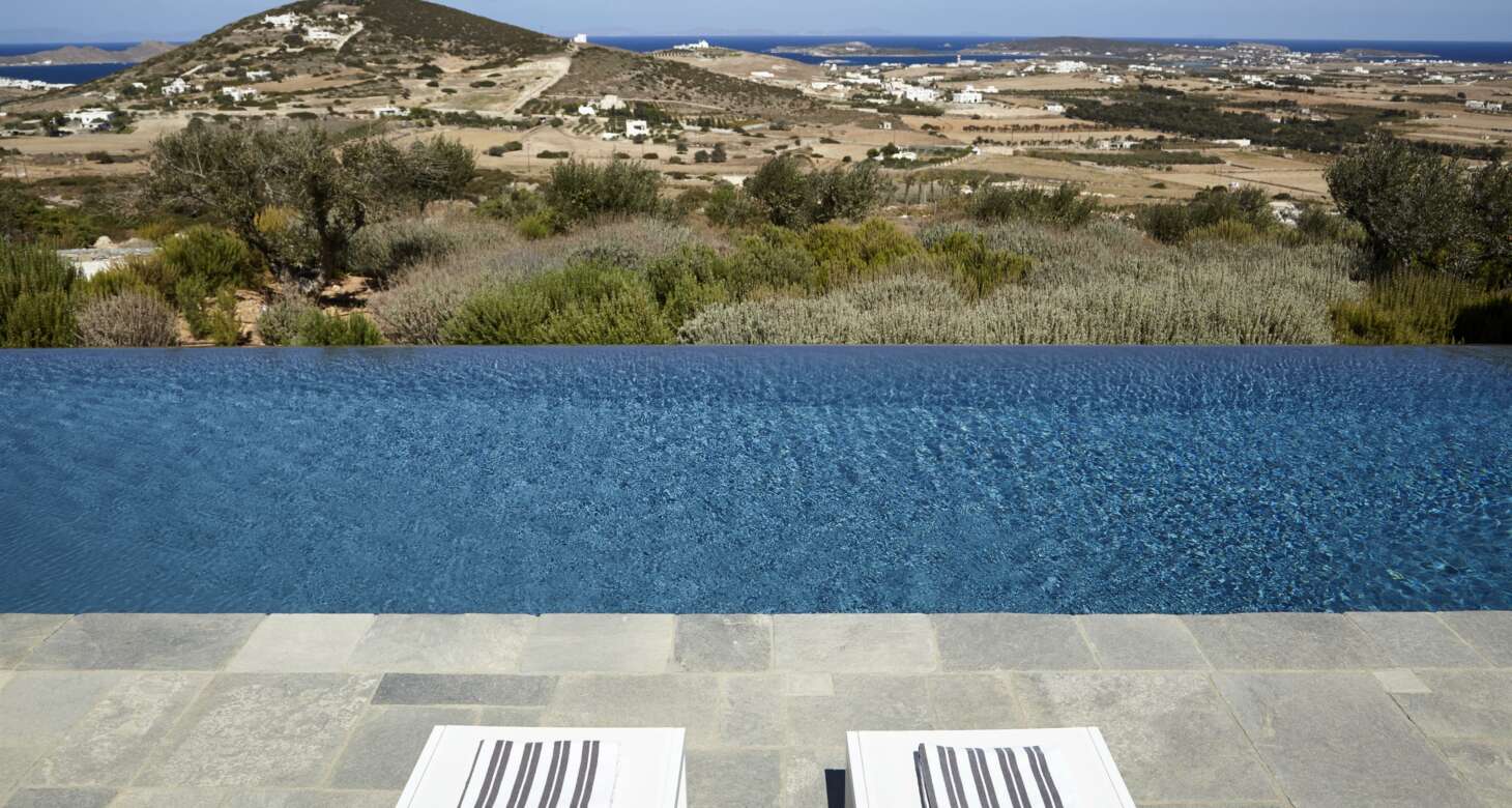 The villa features five bedrooms, each equipped with air conditioning and strategically isolated from the rest of the house to provide maximum comfort and privacy. The kitchen, dining area, and lounge space are separate from the bedrooms and offer panoramic views of the pool, sea, and the neighboring island of Naxos. Large sliding glass doors can be opened to let in the refreshing sea breeze. The dining table comfortably accommodates ten people, and the fully equipped kitchen provides everything you need to prepare delicious meals and drinks for everyone.