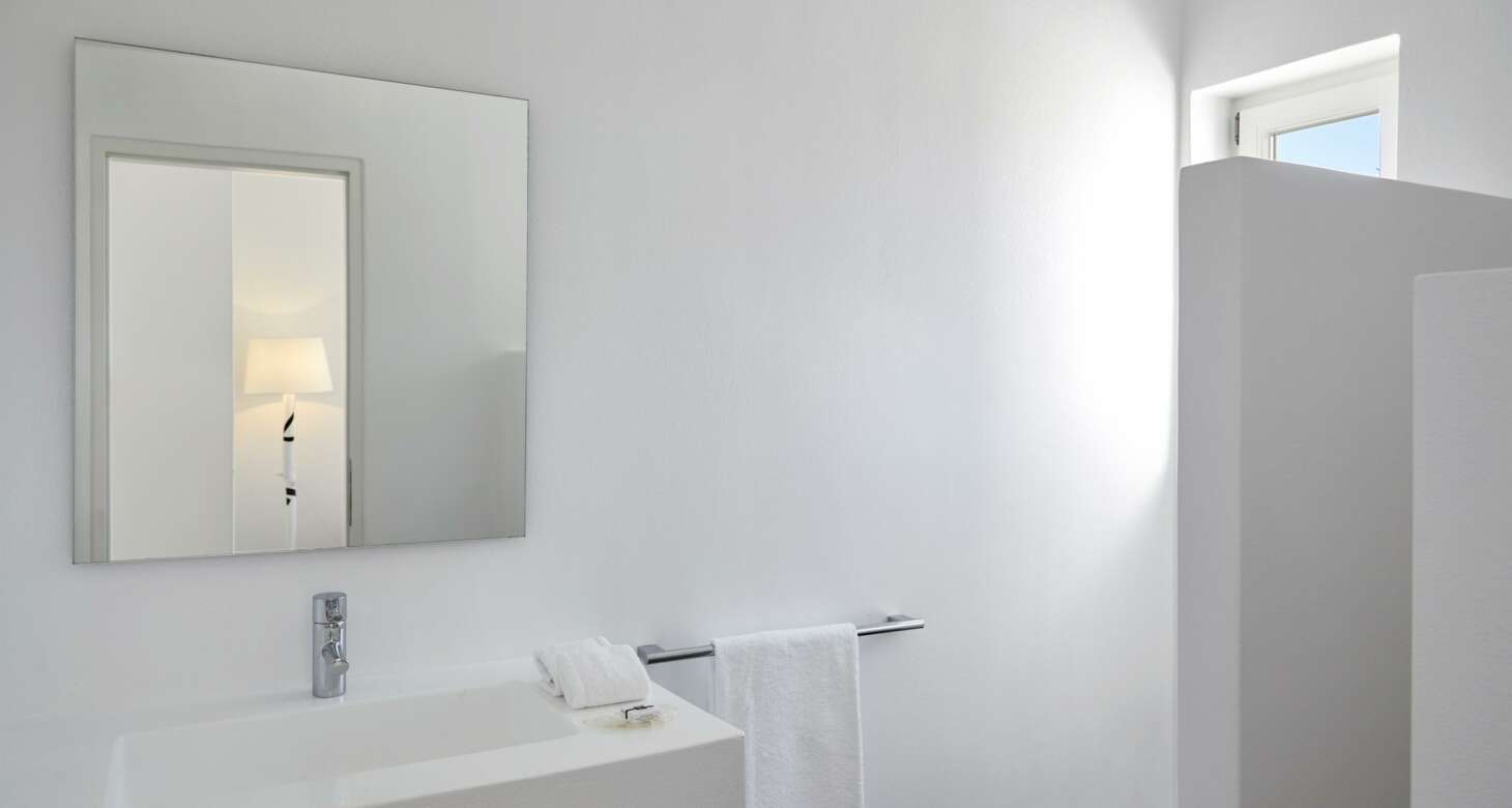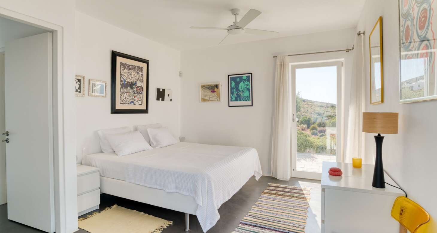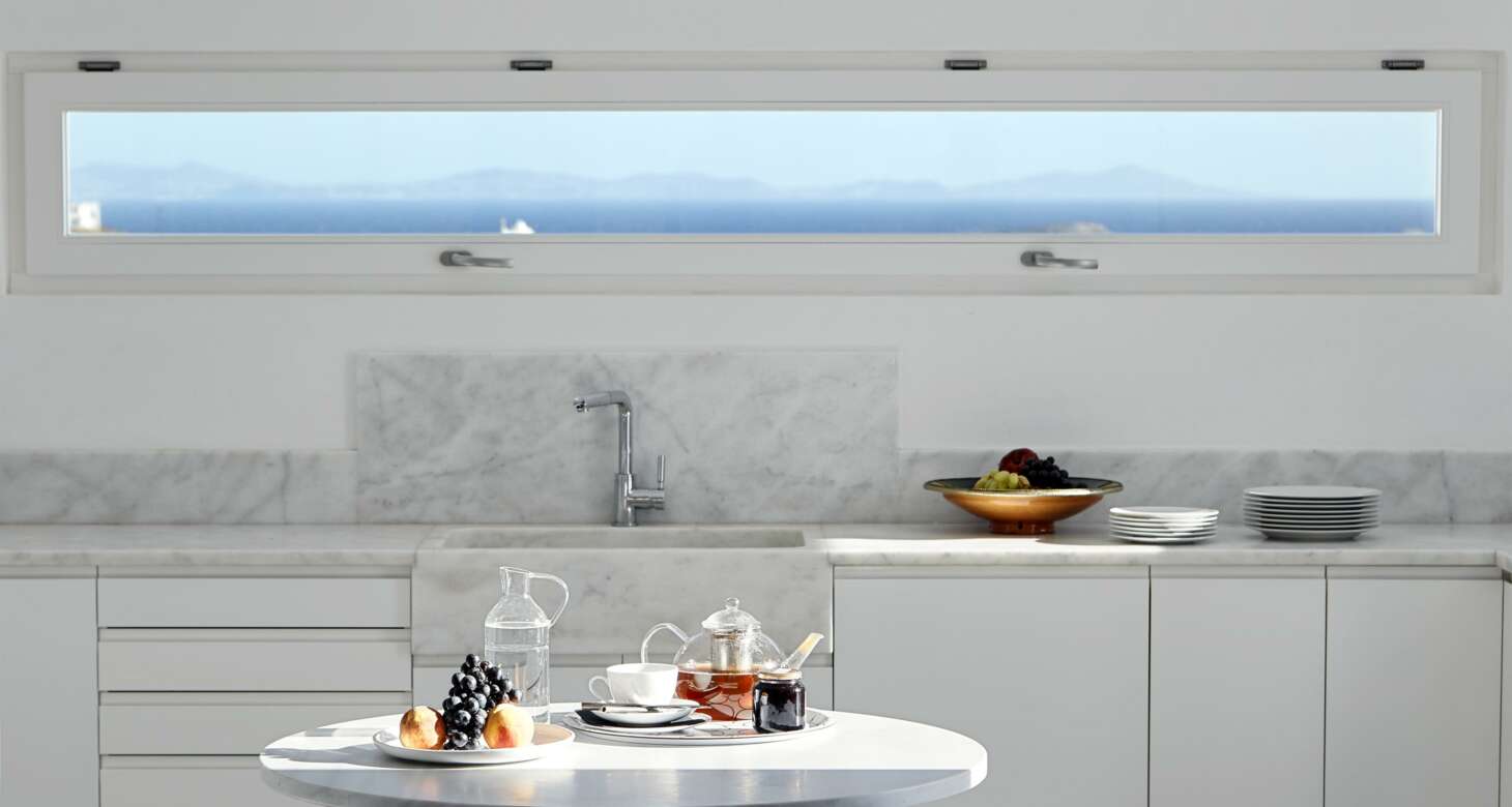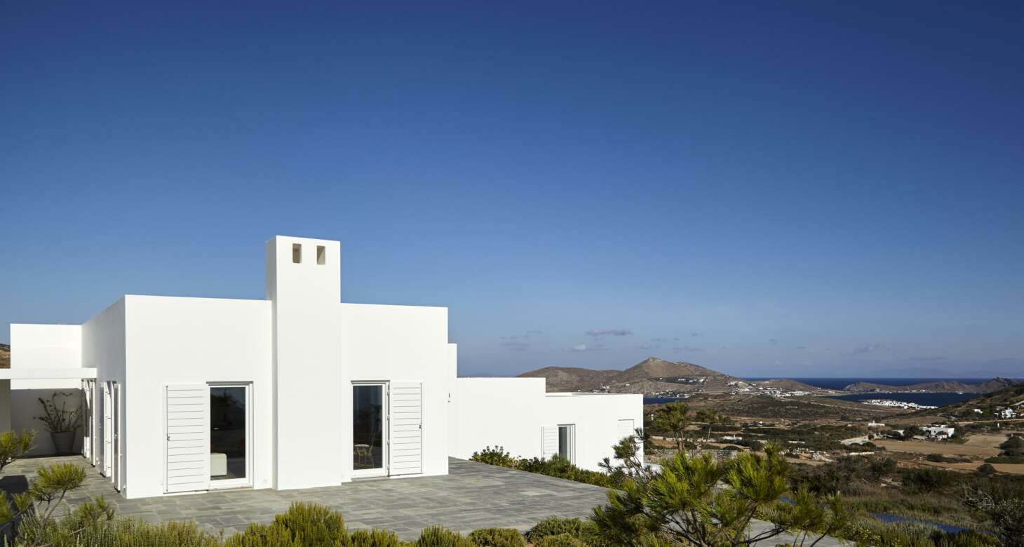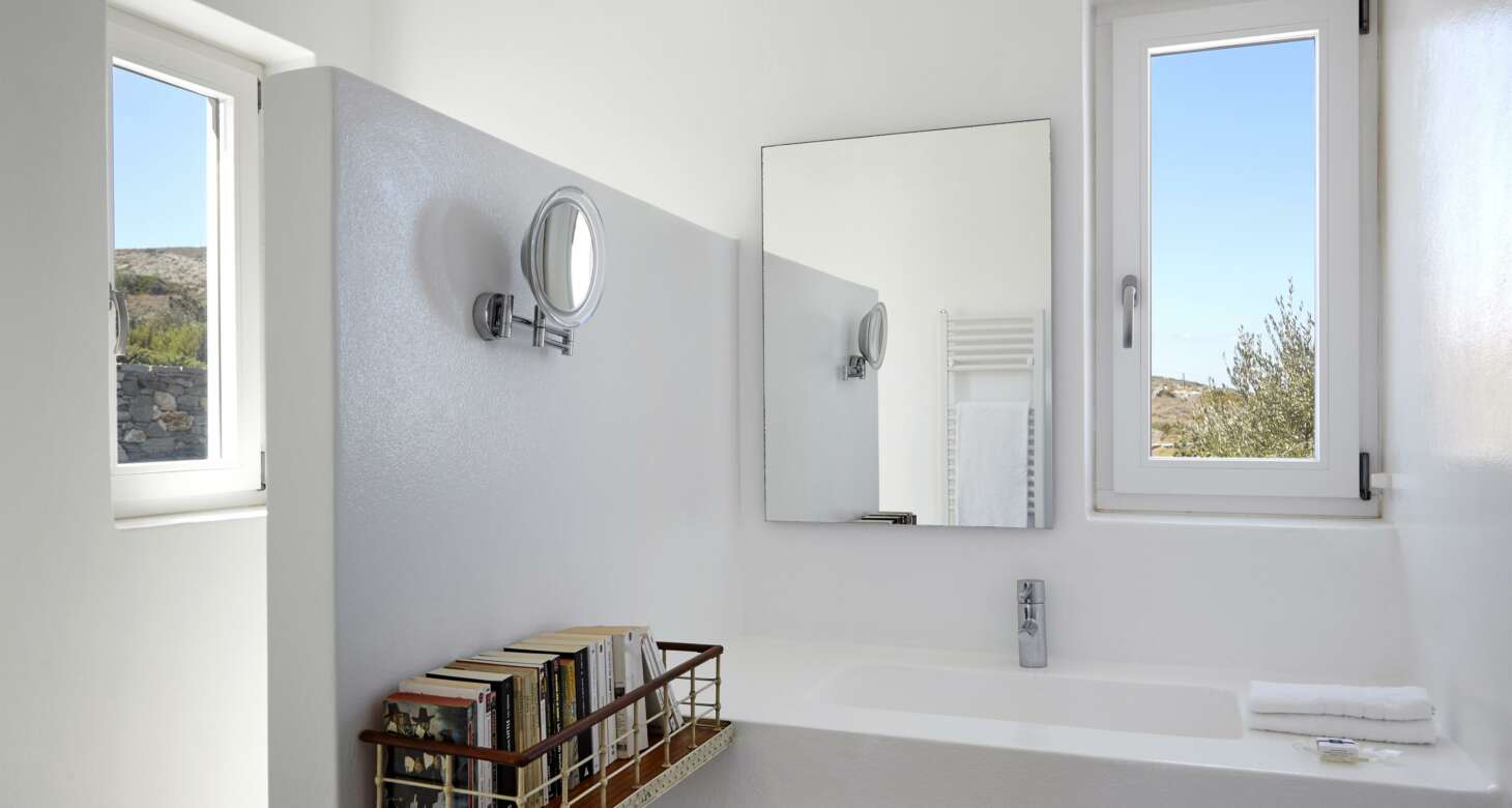 The villa features five bedrooms, each equipped with air conditioning and strategically isolated from the rest of the house to provide maximum comfort and privacy. The kitchen, dining area, and lounge space are separate from the bedrooms and offer panoramic views of the pool, sea, and the neighboring island of Naxos. Large sliding glass doors can be opened to let in the refreshing sea breeze. The dining table comfortably accommodates ten people, and the fully equipped kitchen provides everything you need to prepare delicious meals and drinks for everyone.