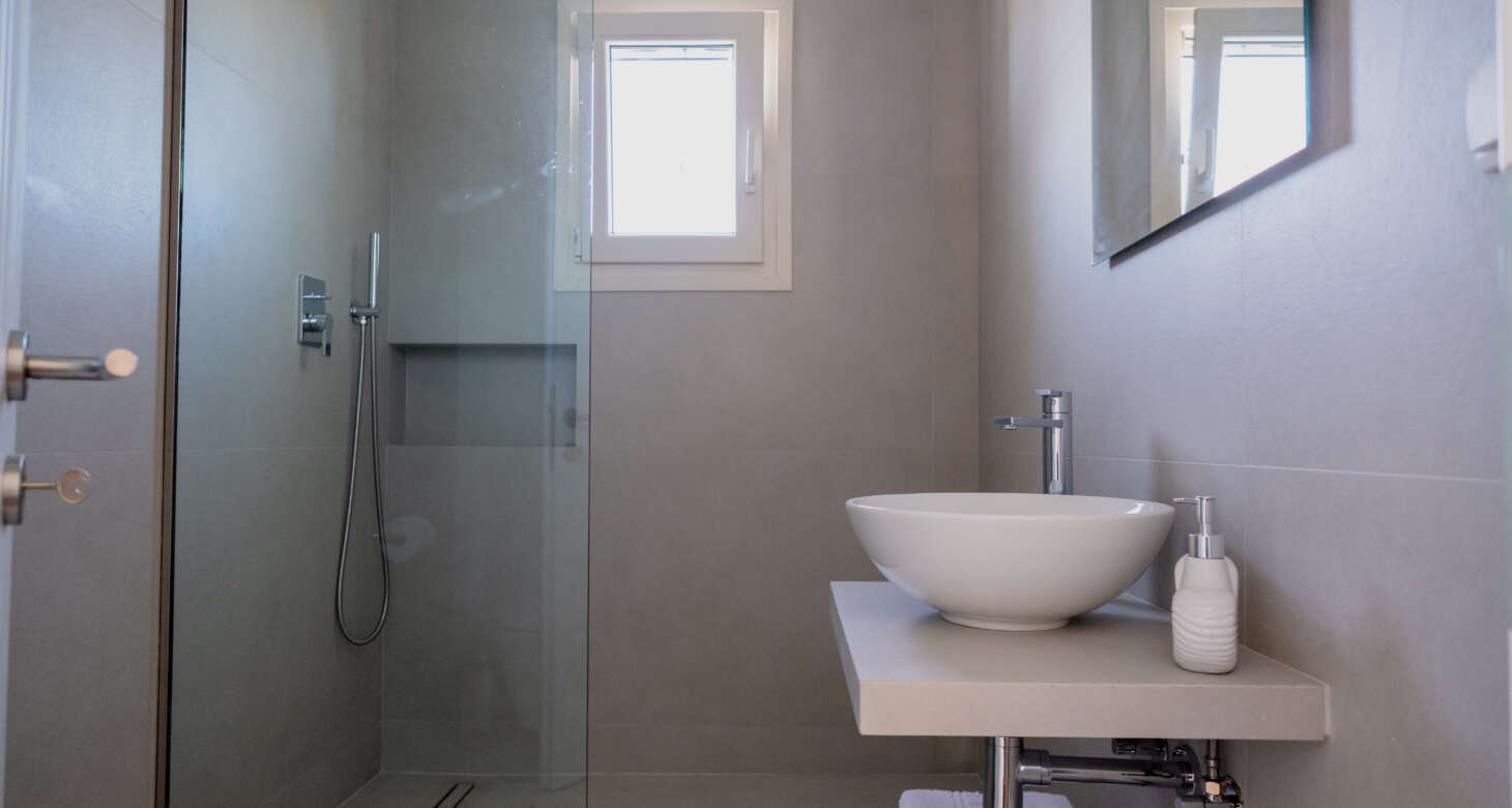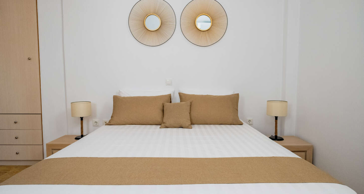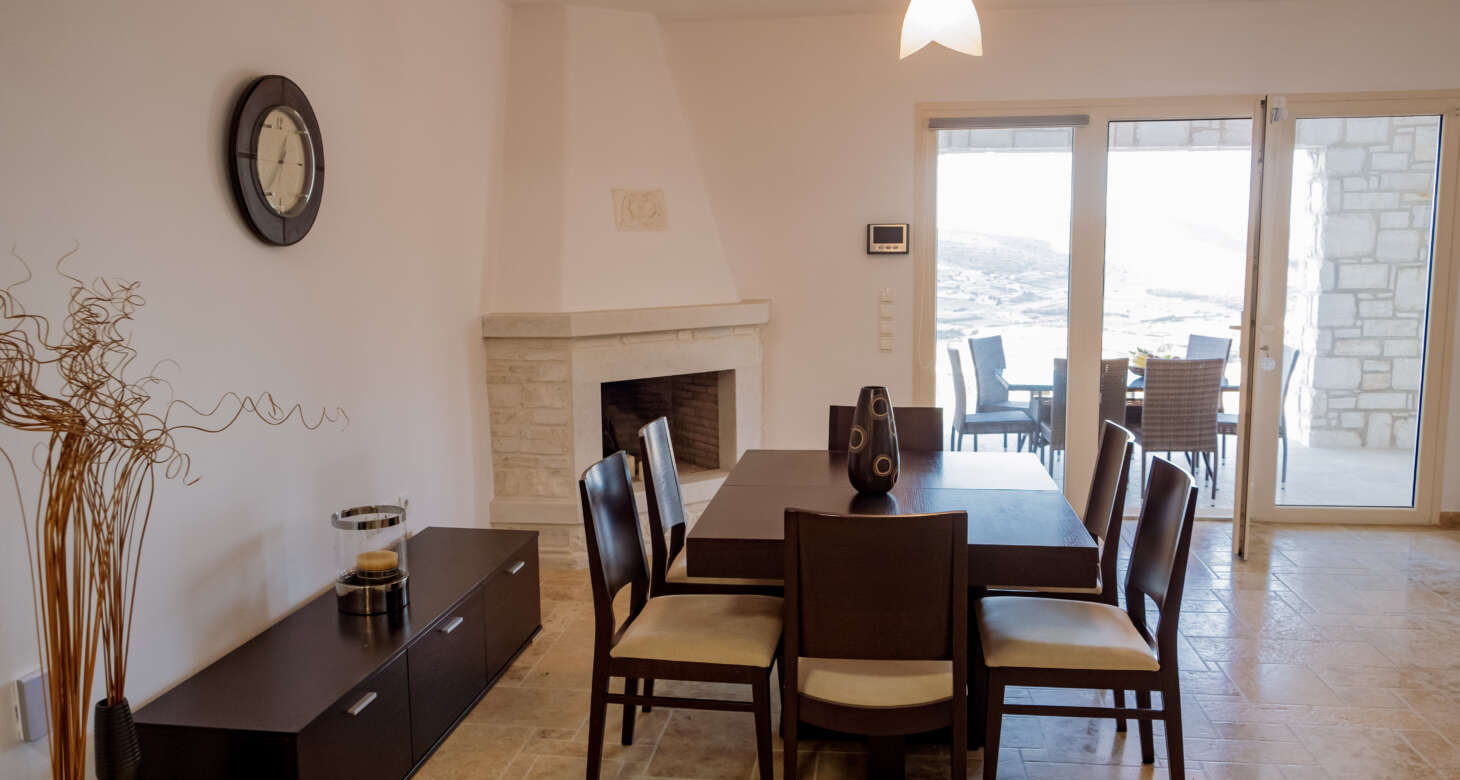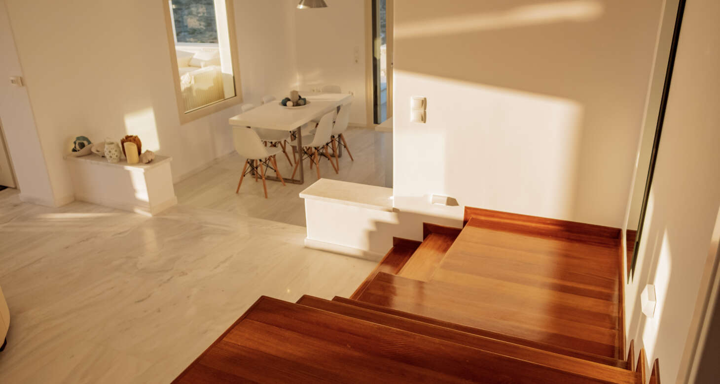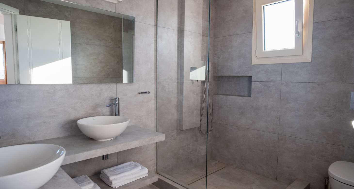 The villa boasts a captivating Cycladic geometrical design with a dominant white aesthetic, featuring high-quality materials. Striking a perfect balance between traditional and modern elements, Villa Mariza reflects the essence of Greek culture through cheerful light artwork and frescos.