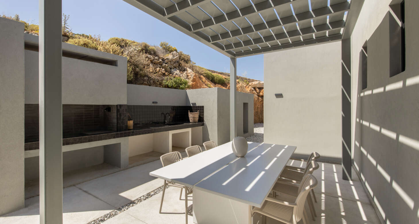 As you enter, breathtaking views unfold, stretching out to the sparkling Aegean Sea. Grace is seamlessly integrated into the hillside, creating a harmonious connection with nature. The sunsets here are truly magical, as the moon rises and the mystical Greek light bathes the surroundings, evoking a profound sense of place that can only be found in this corner of the world.