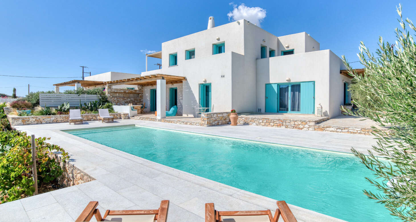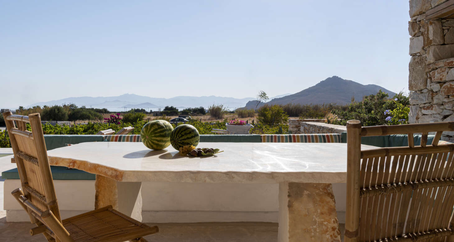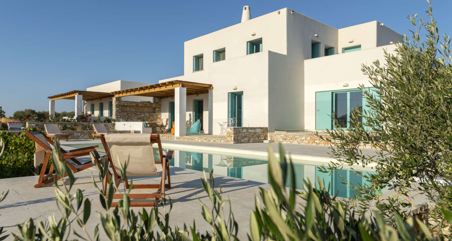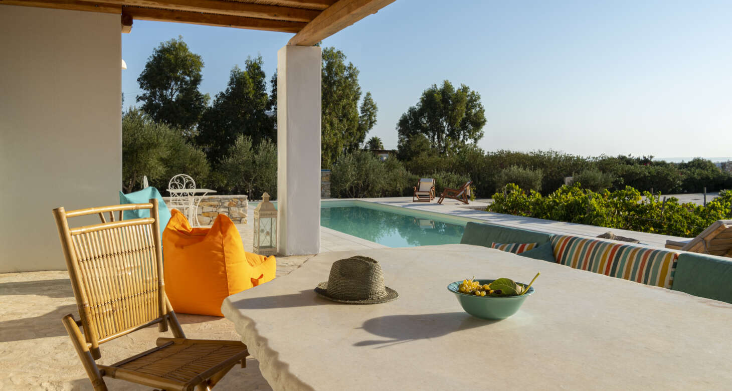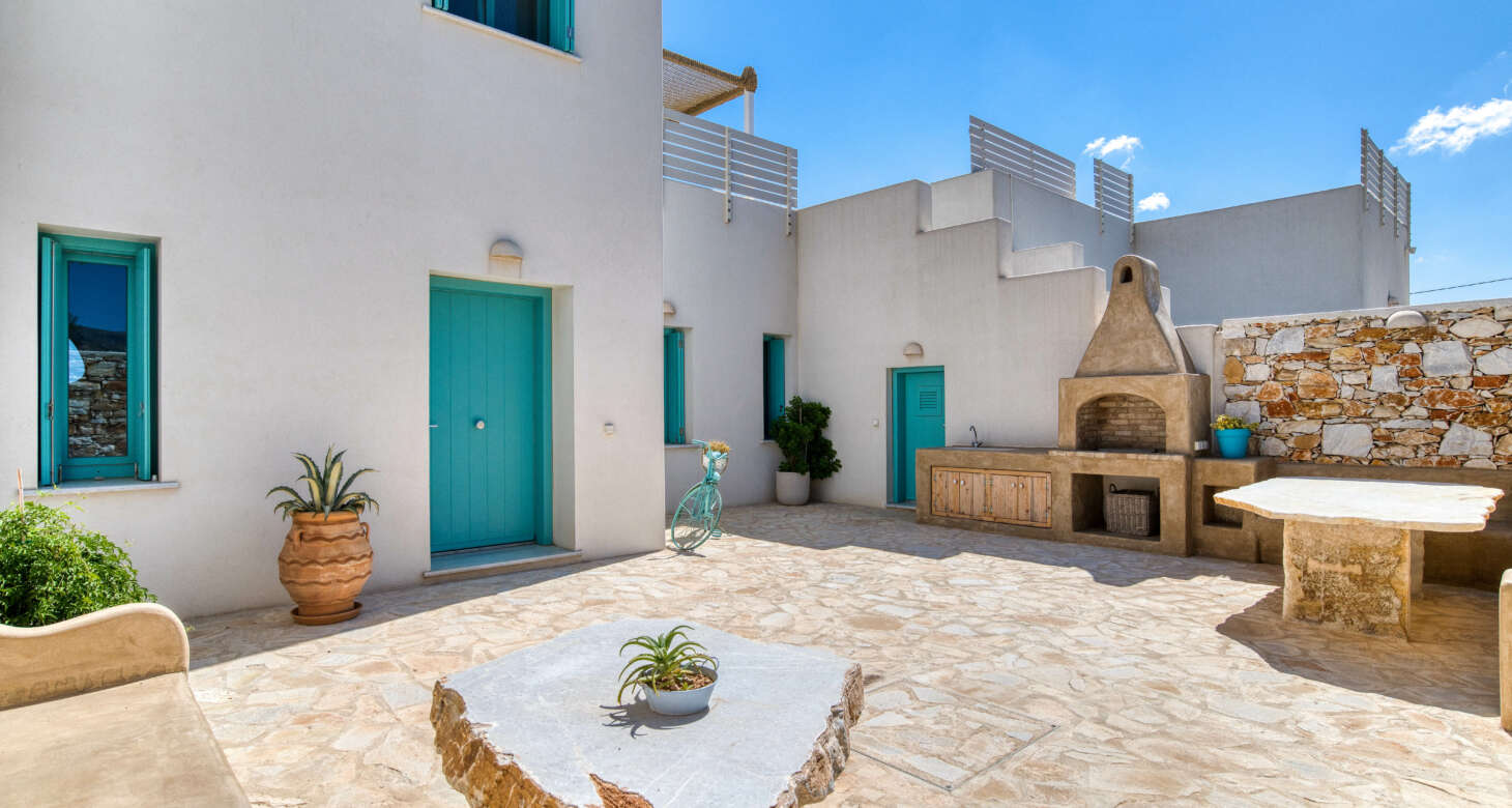 Welcome to Villa Natura II, a radiant burst of color and charm set against the backdrop of Tsoukalia’s serene landscape. This remarkable property is a vibrant symphony of mint hues, evoking a sense of playfulness and tranquility. From the fabrics to the stones, every detail has been meticulously crafted to infuse the space with the spirit of a traditional island home, while embracing a contemporary twist.