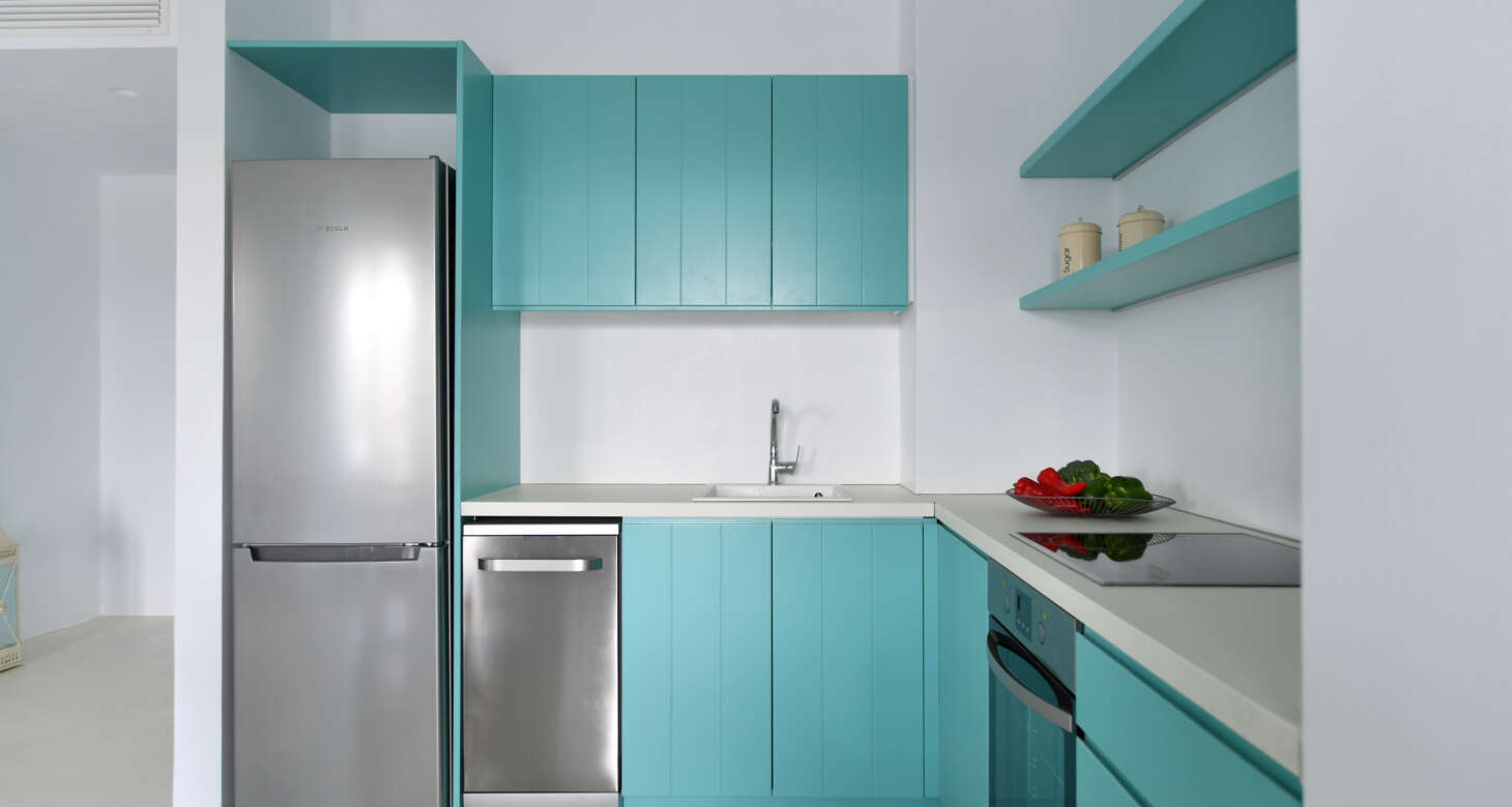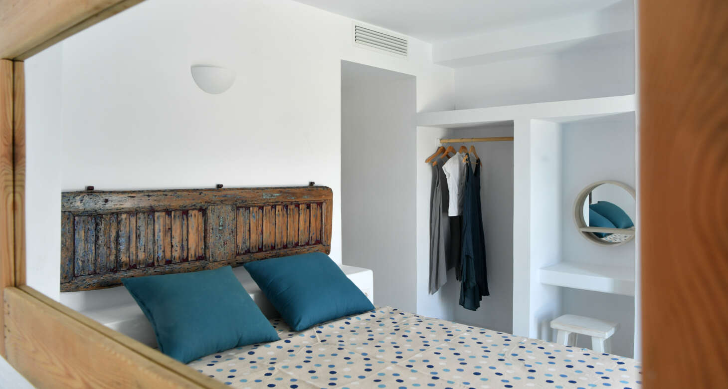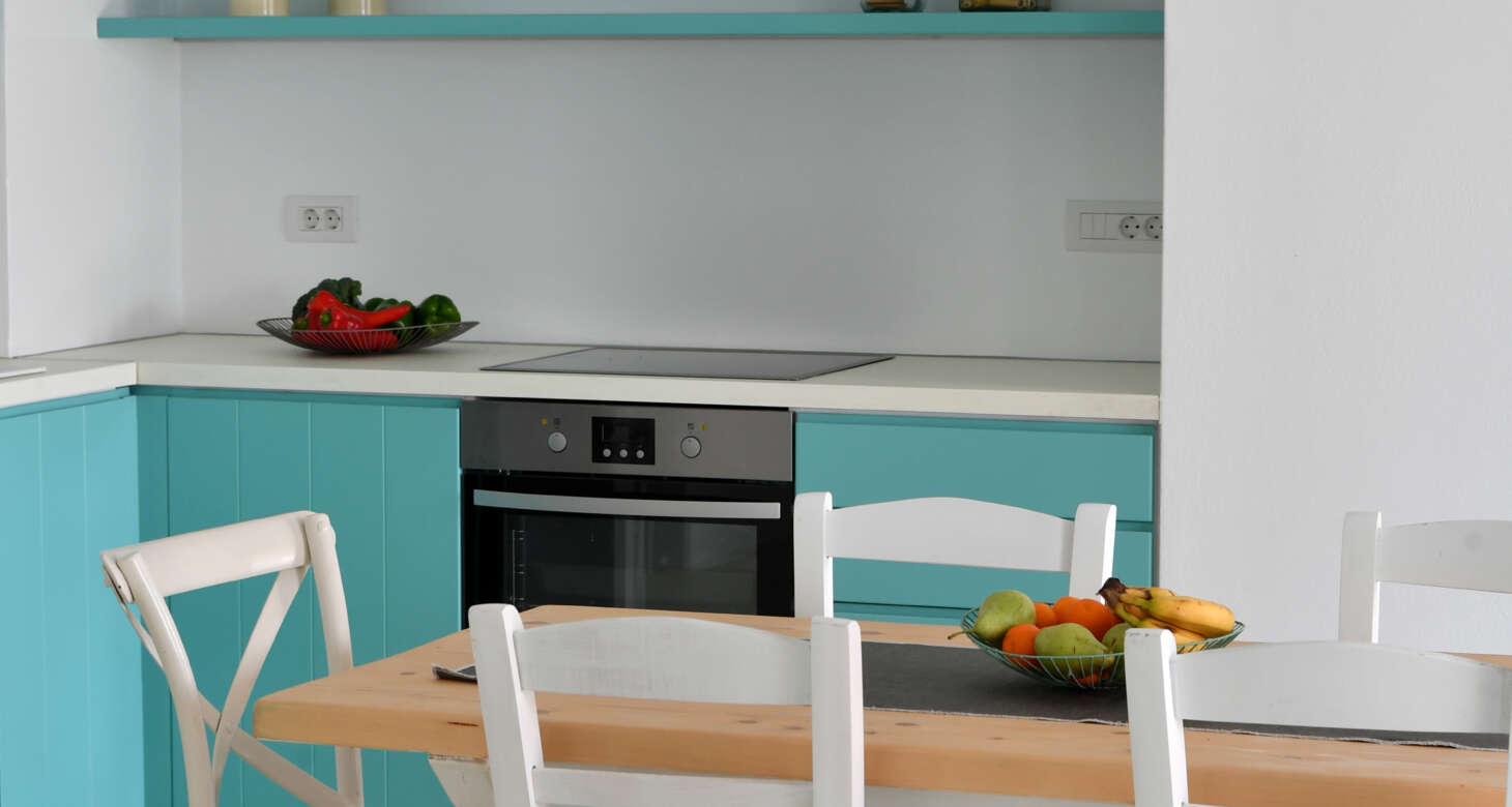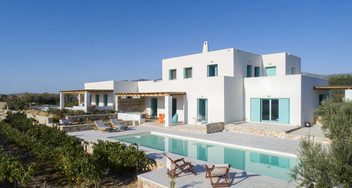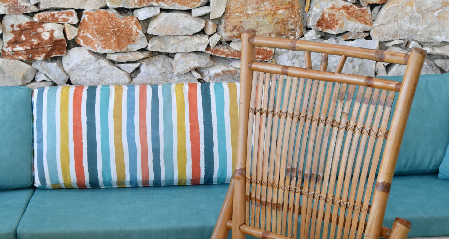 Welcome to Villa Natura II, a radiant burst of color and charm set against the backdrop of Tsoukalia’s serene landscape. This remarkable property is a vibrant symphony of mint hues, evoking a sense of playfulness and tranquility. From the fabrics to the stones, every detail has been meticulously crafted to infuse the space with the spirit of a traditional island home, while embracing a contemporary twist.