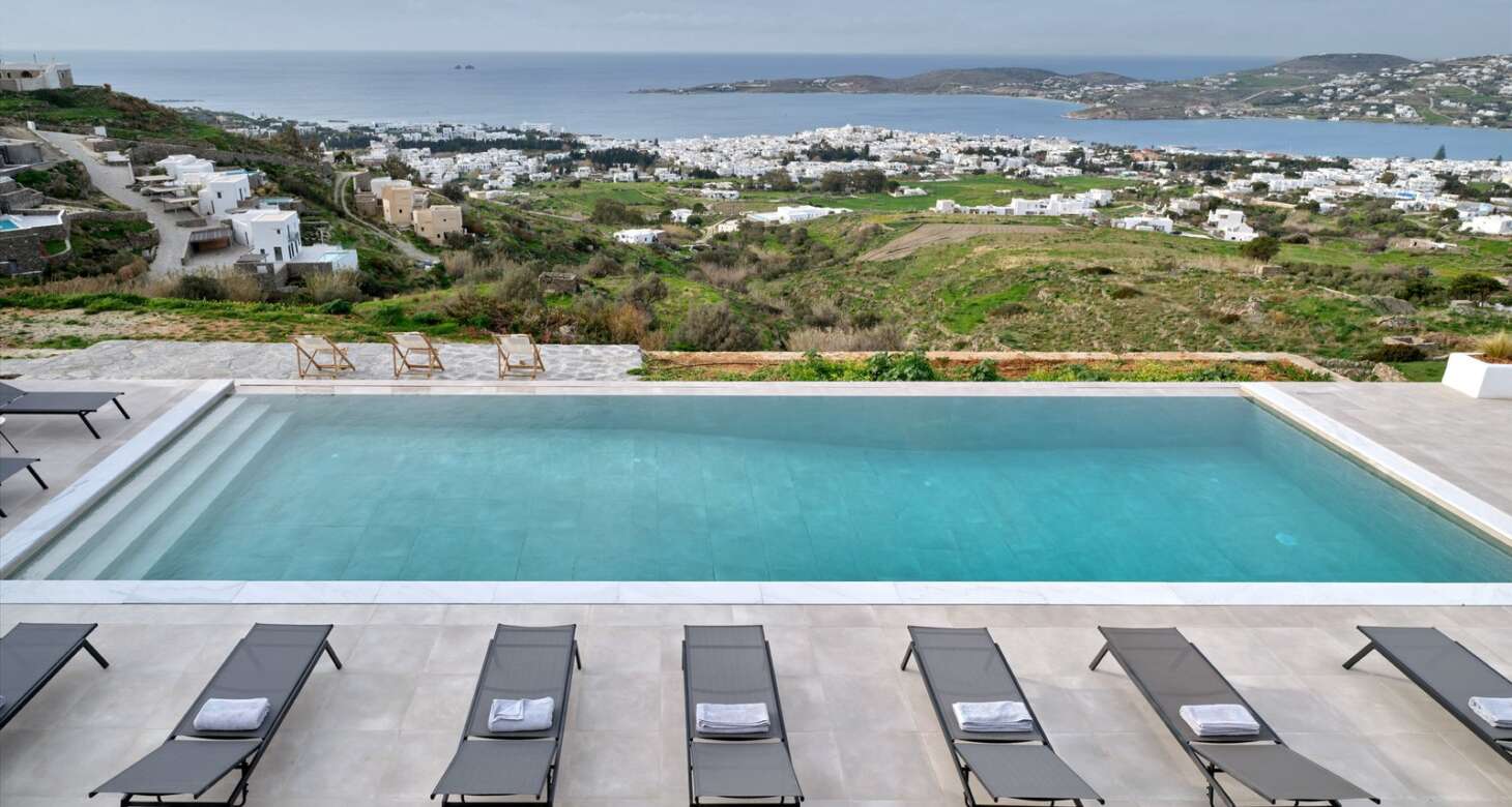 Nestled in the picturesque town of Parikia on Paros Island, Villa Azour is a luxurious 370 sqm retreat offering a serene blend of modern comfort and Cycladic charm. With breathtaking views of the Aegean Sea, the villa accommodates up to 13 guests, making it ideal for family gatherings, weddings, or group vacations. Its six spacious bedrooms, each with an en-suite bathroom, promise privacy and relaxation for all.