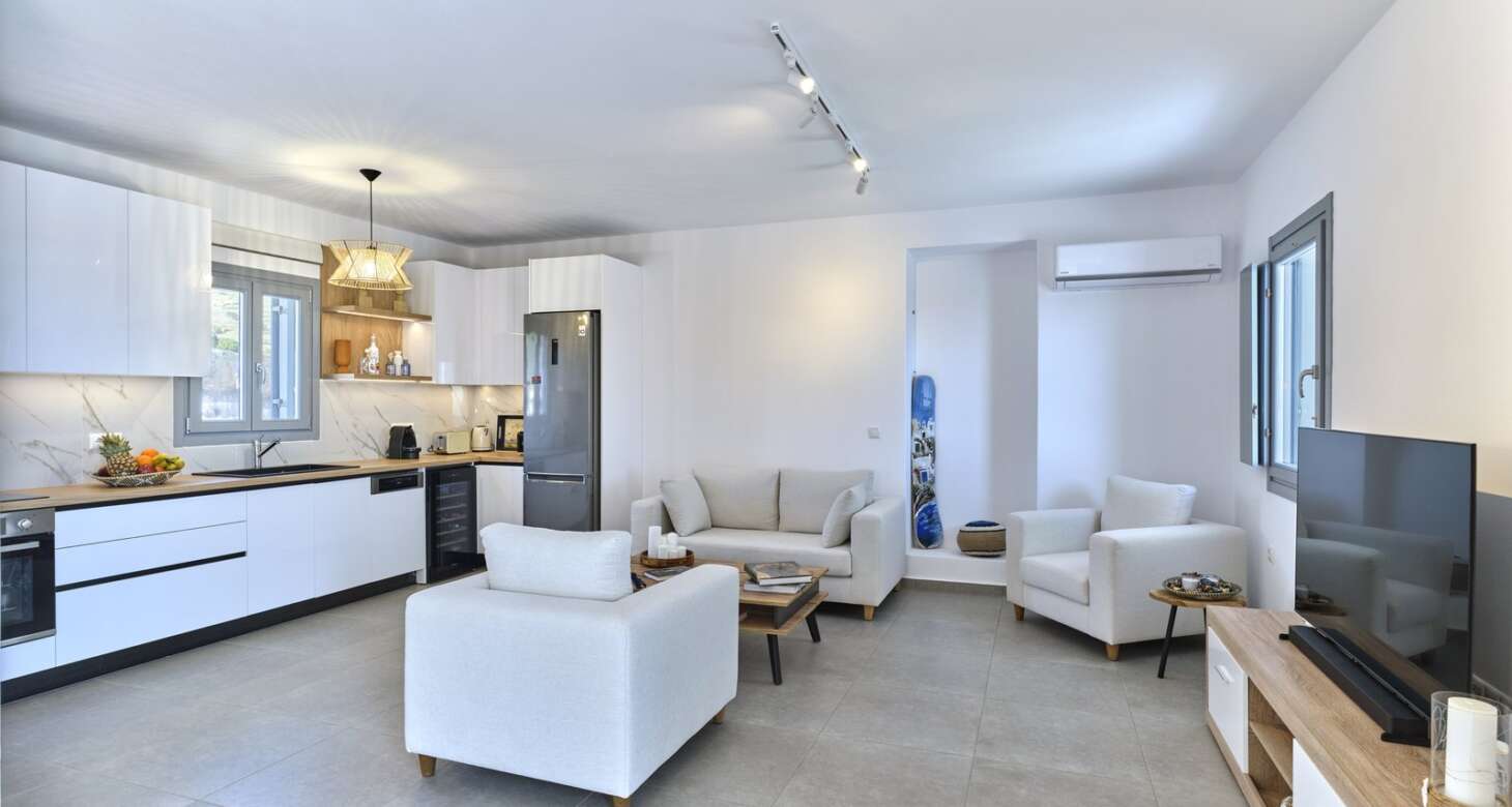 Perfect for families or groups, this villa captures the essence of Greek island living. It is a haven for relaxation, offering luxury and convenience amidst the beauty of Paros. Whether for a short getaway or an extended vacation, this stunning retreat promises an unforgettable stay.