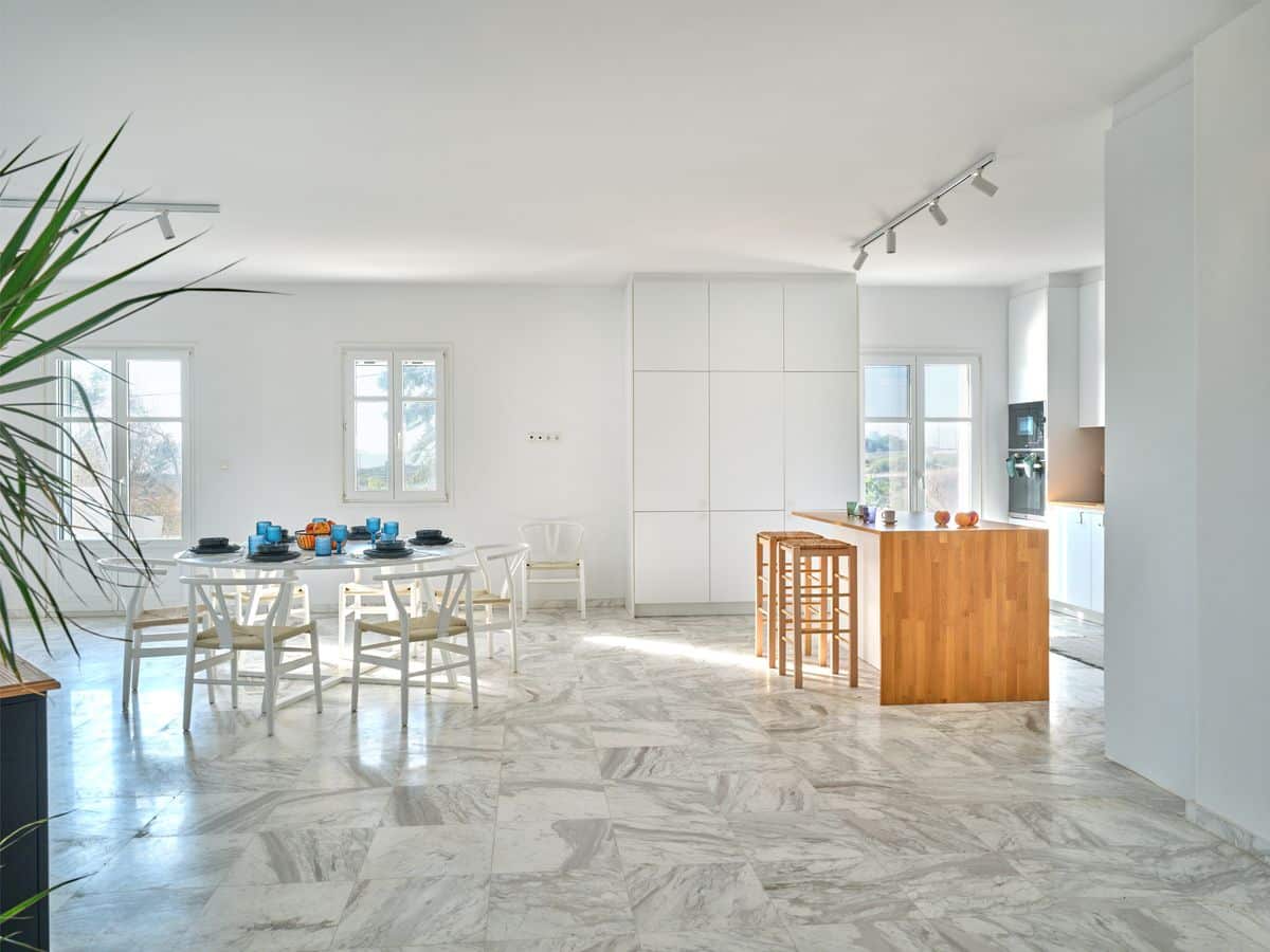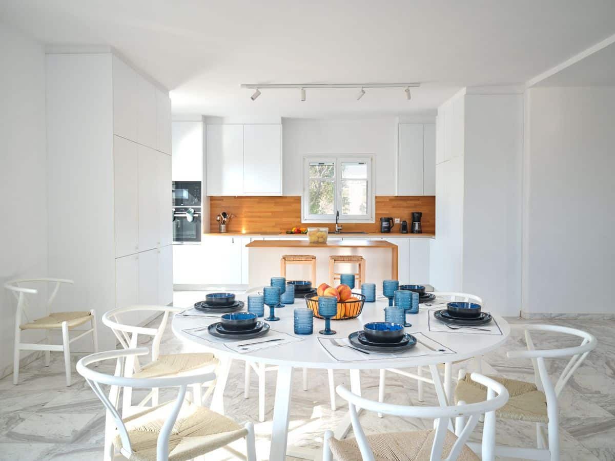 Inside, Villa Amal features bright and spacious living areas that combine functionality with understated luxury. A fully equipped kitchen and generous dining space create the perfect setting for shared meals, while comfortable lounge areas invite guests to relax and unwind. Clean lines, natural light, and carefully selected furnishings enhance the villa’s calm and welcoming atmosphere.