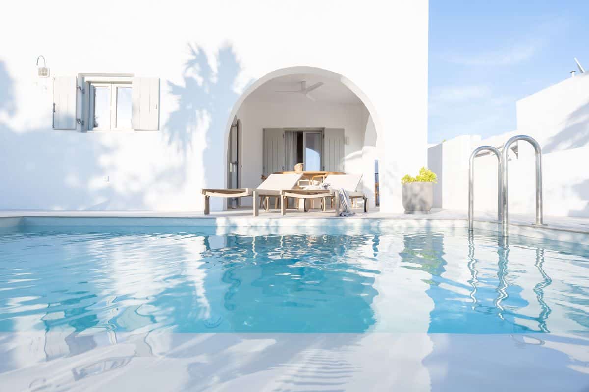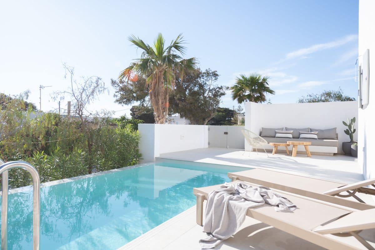 The outdoor area is where the villa stands out. A private swimming pool is complemented by sun loungers, a spacious terrace, and an outdoor dining area. A built-in BBQ and seating space allow guests to enjoy long meals and gatherings in a laid-back, open-air setting.