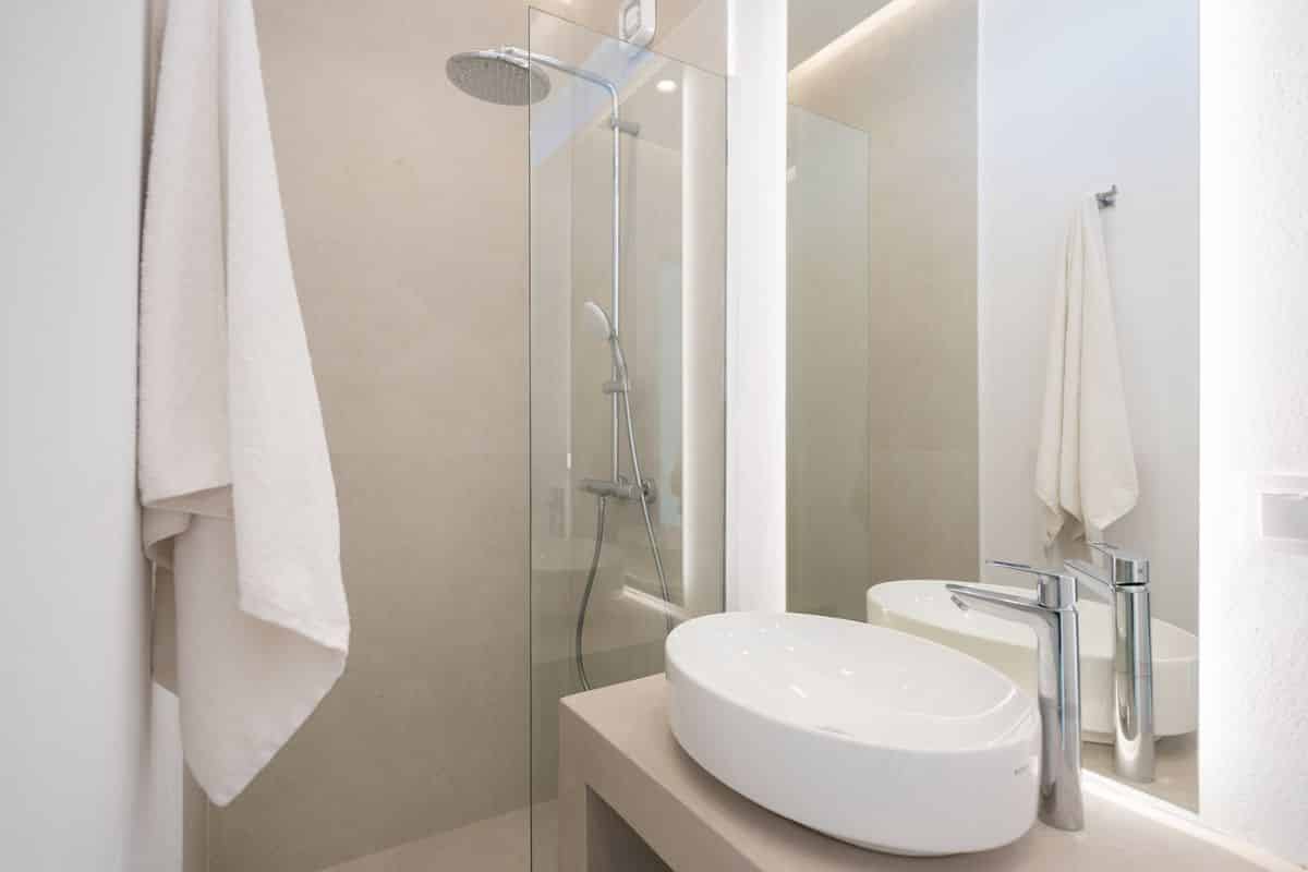 Inside, modern amenities ensure a seamless stay. Air conditioning, WiFi, and practical appliances support both short and extended visits, while the overall design maintains a clean and relaxed island aesthetic.