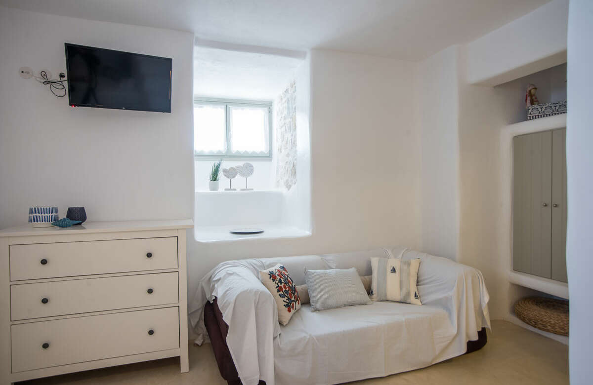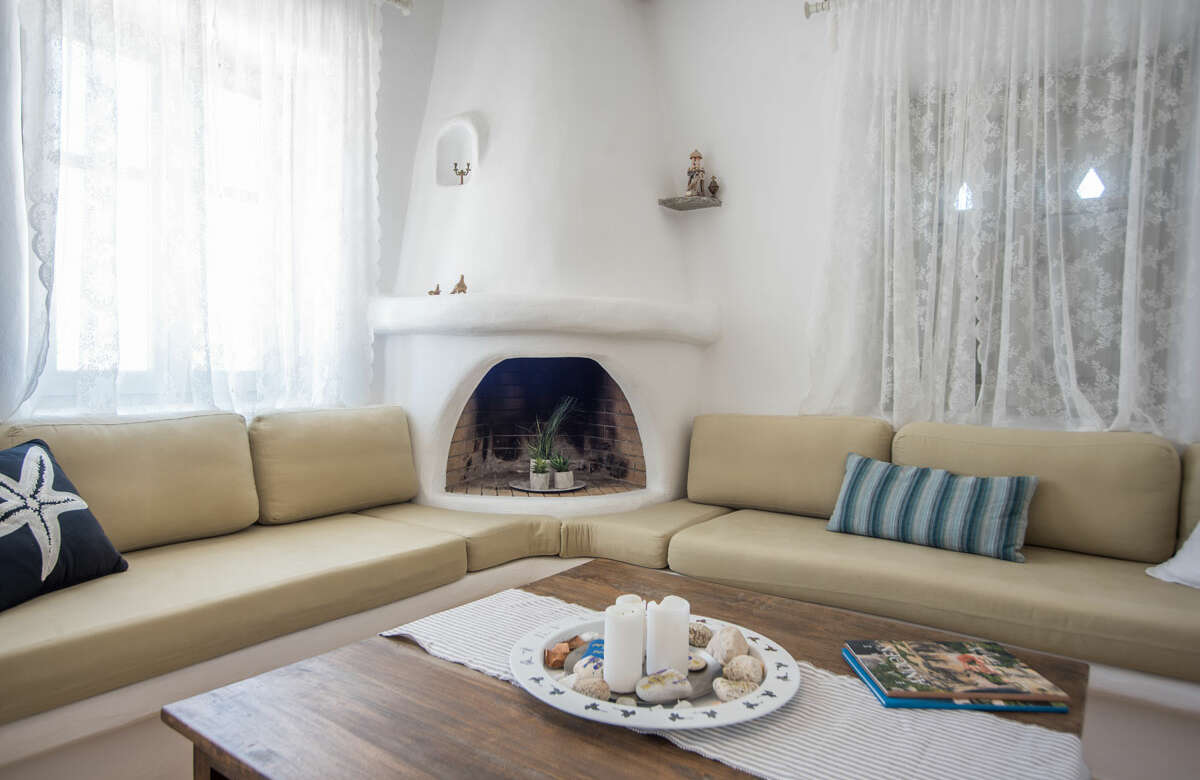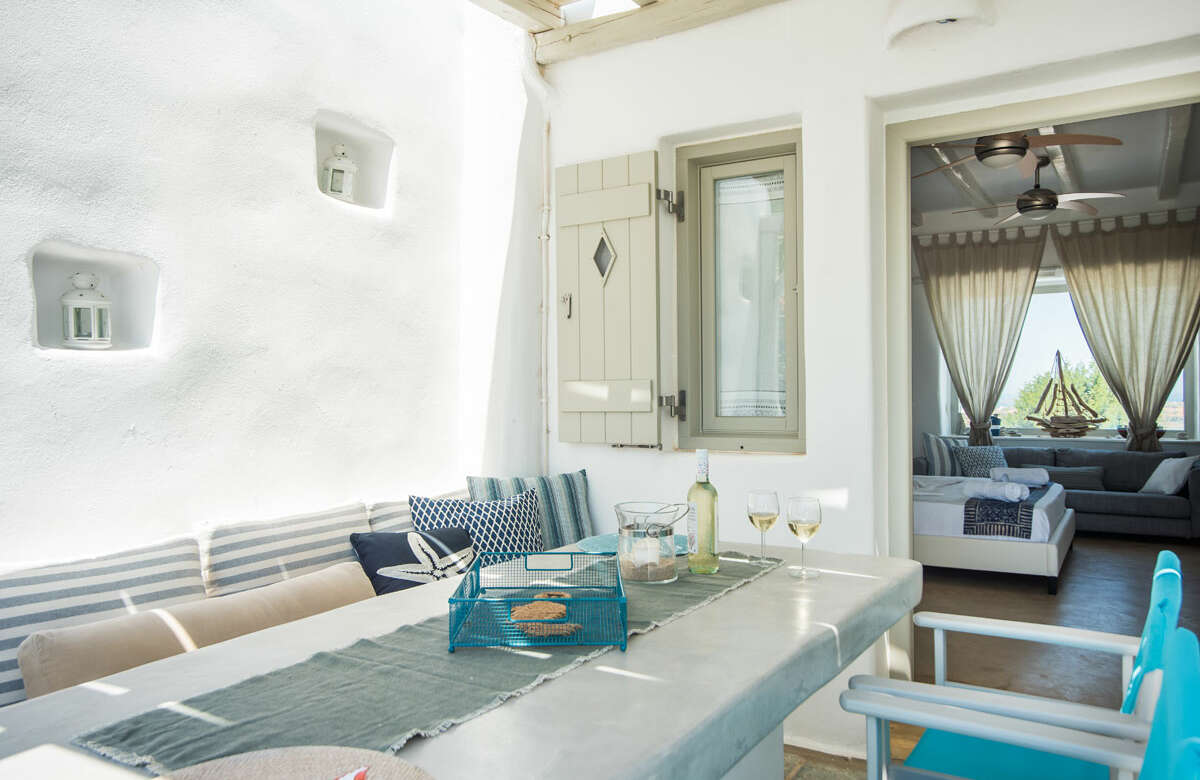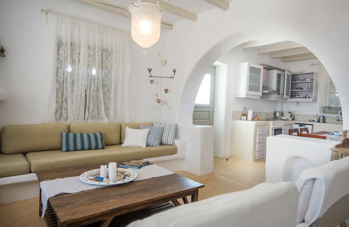 As you enter the house, you’ll be greeted by the traditional Cycladic architectural style and modern amenities. The interior is thoughtfully decorated, offering a blend of comfort and authentic island charm. The maisonette was constructed in 2012, incorporating contemporary design elements while preserving the traditional Cycladic aesthetics.