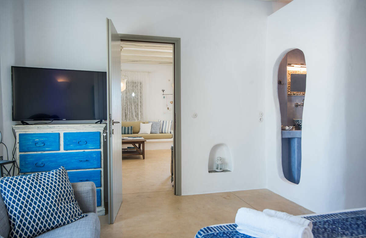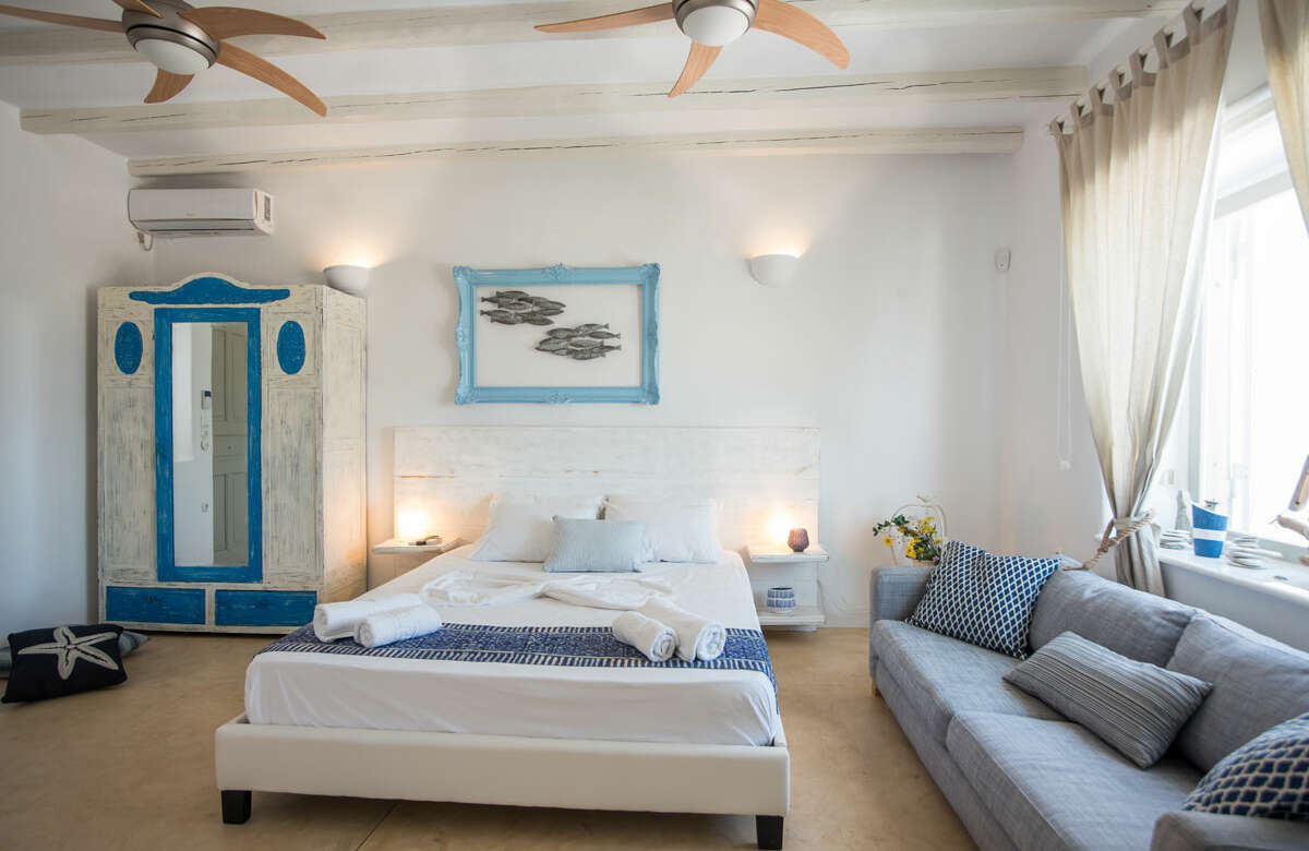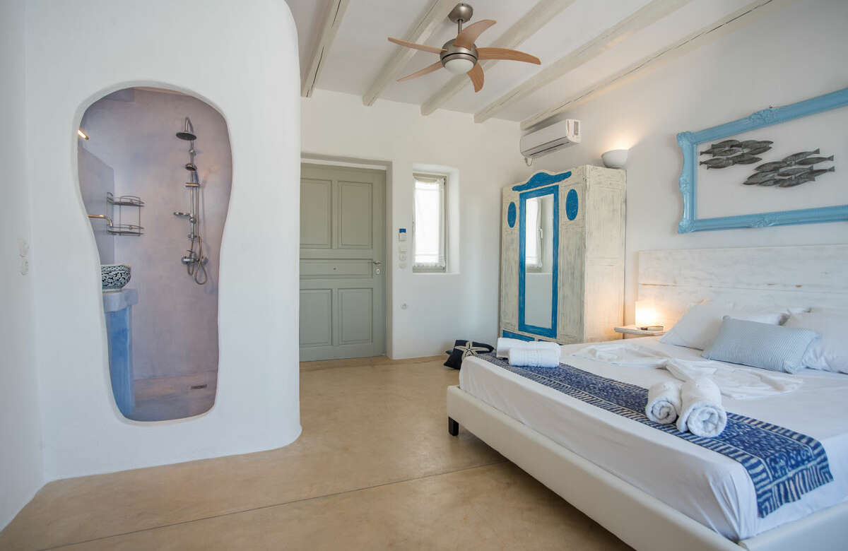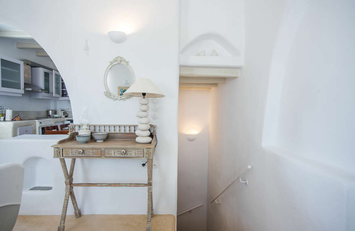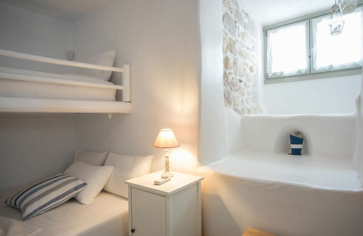 As you enter the house, you’ll be greeted by the traditional Cycladic architectural style and modern amenities. The interior is thoughtfully decorated, offering a blend of comfort and authentic island charm. The maisonette was constructed in 2012, incorporating contemporary design elements while preserving the traditional Cycladic aesthetics.