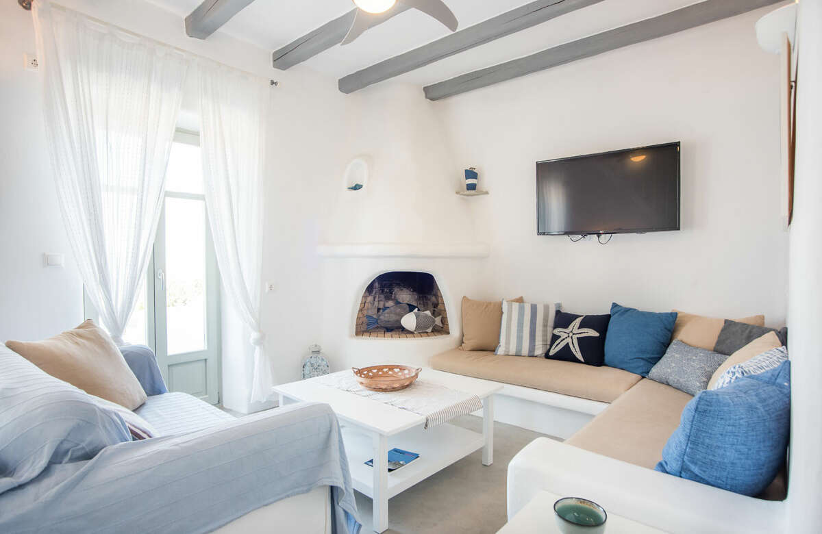 Aura III presents a unique and memorable experience in the heart of Paros. With its spacious layout, traditional charm, modern amenities, and stunning views, this Cycladic apartment invites you to relax, unwind, and create lasting memories. Whether you are traveling with a small group or a larger party, Aura III comfortably accommodates up to six adults, with a maximum capacity of ten adults