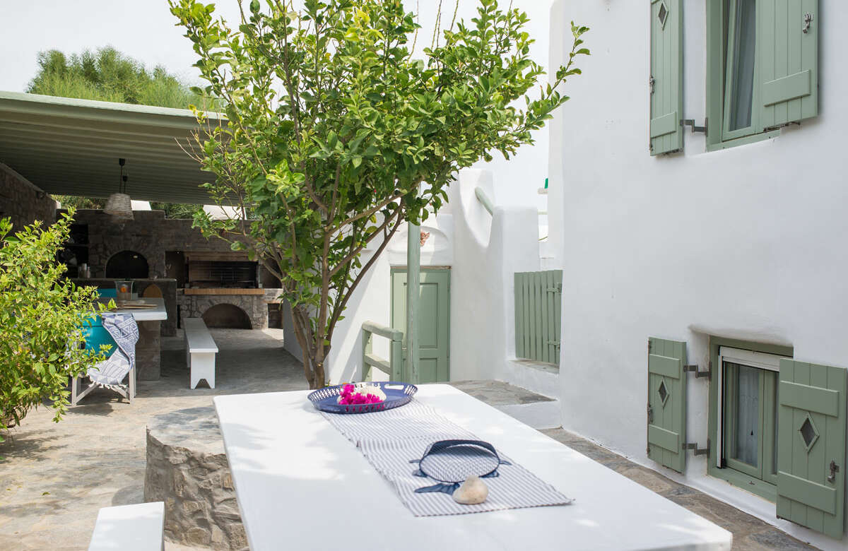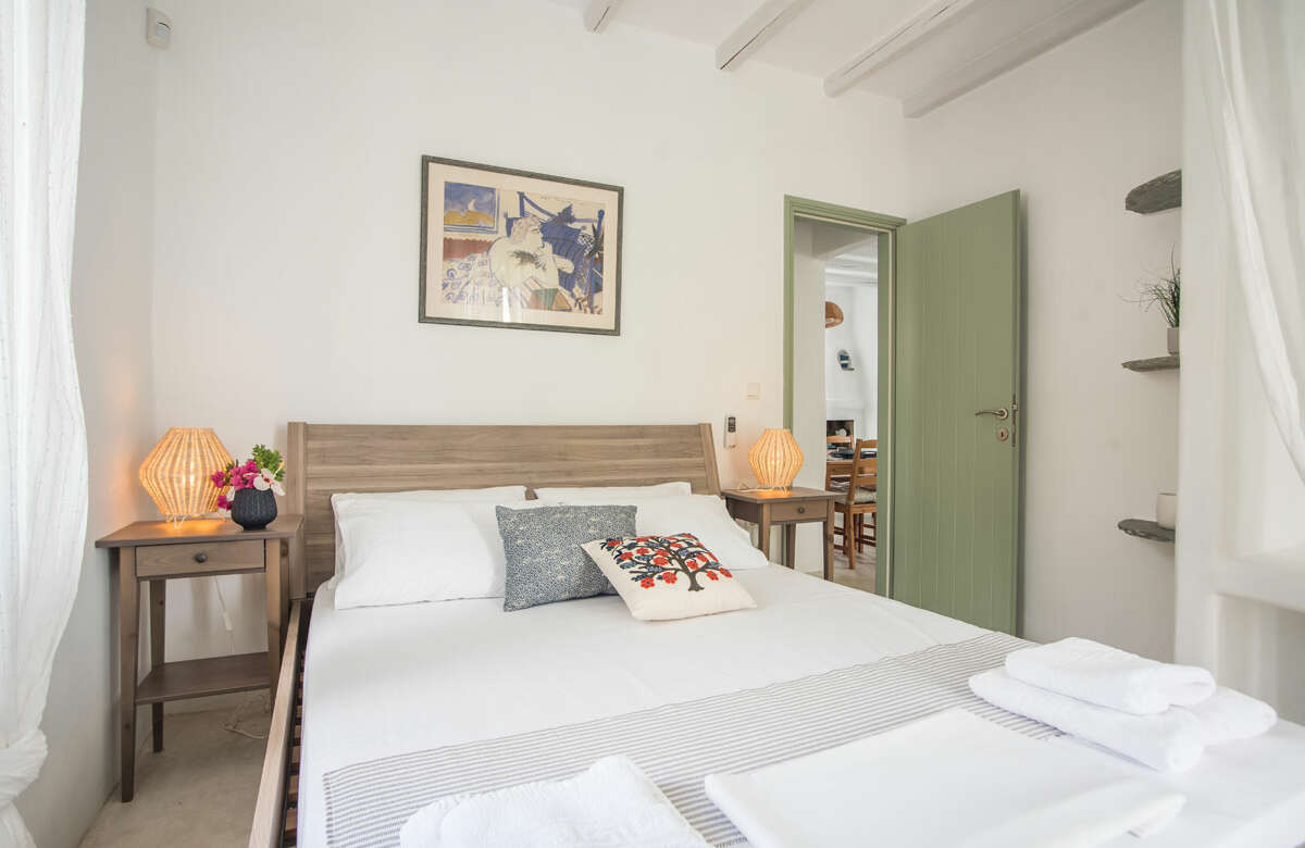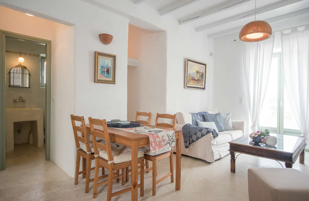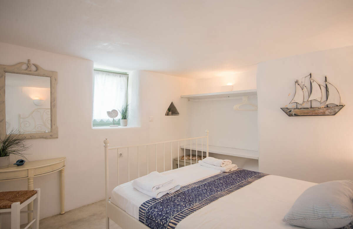 As you enter the house, you will be enchanted by the traditional Cycladic architecture and the attention to detail. The traditional house is fully furnished, providing a comfortable and inviting atmosphere. With four bedrooms and three bathrooms, it comfortably accommodates up to eight adults, making it an ideal choice for families or groups of friends seeking a spacious retreat.