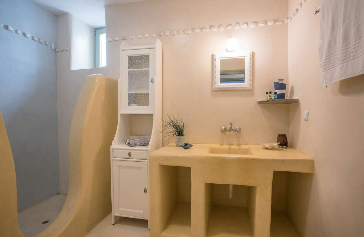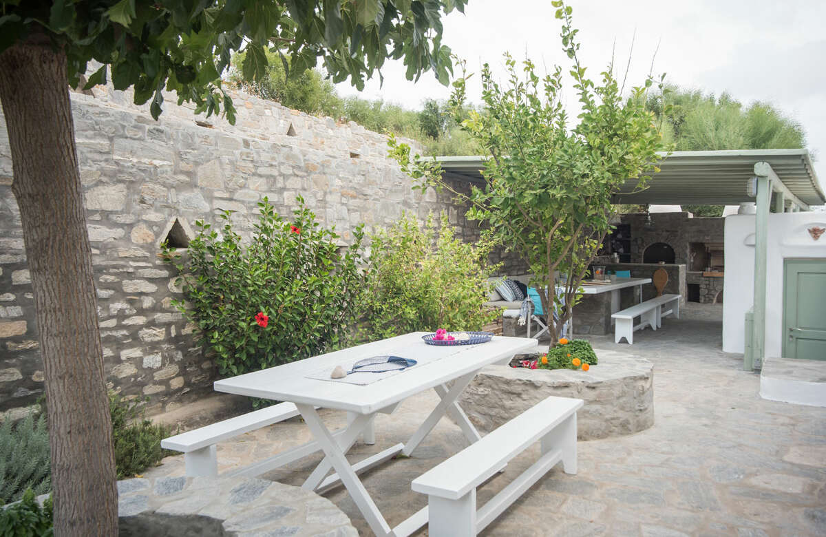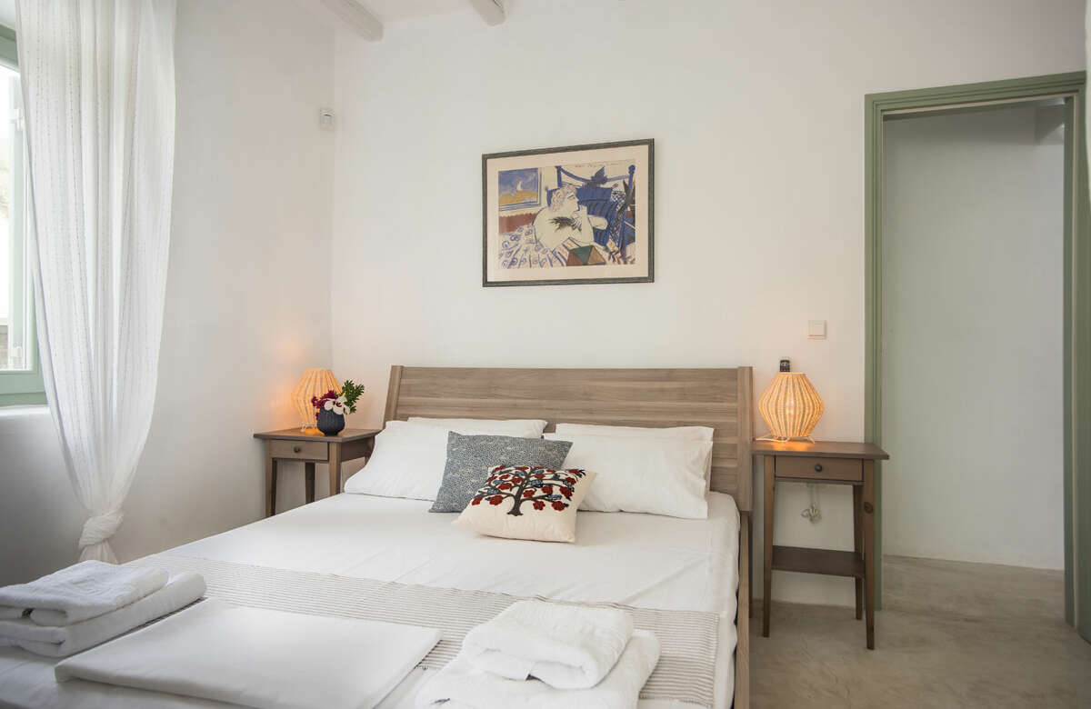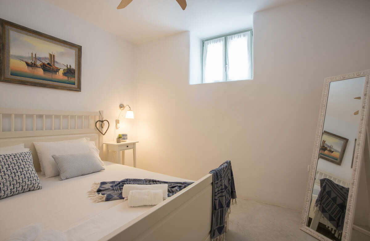 As you enter the house, you will be enchanted by the traditional Cycladic architecture and the attention to detail. The traditional house is fully furnished, providing a comfortable and inviting atmosphere. With four bedrooms and three bathrooms, it comfortably accommodates up to eight adults, making it an ideal choice for families or groups of friends seeking a spacious retreat.