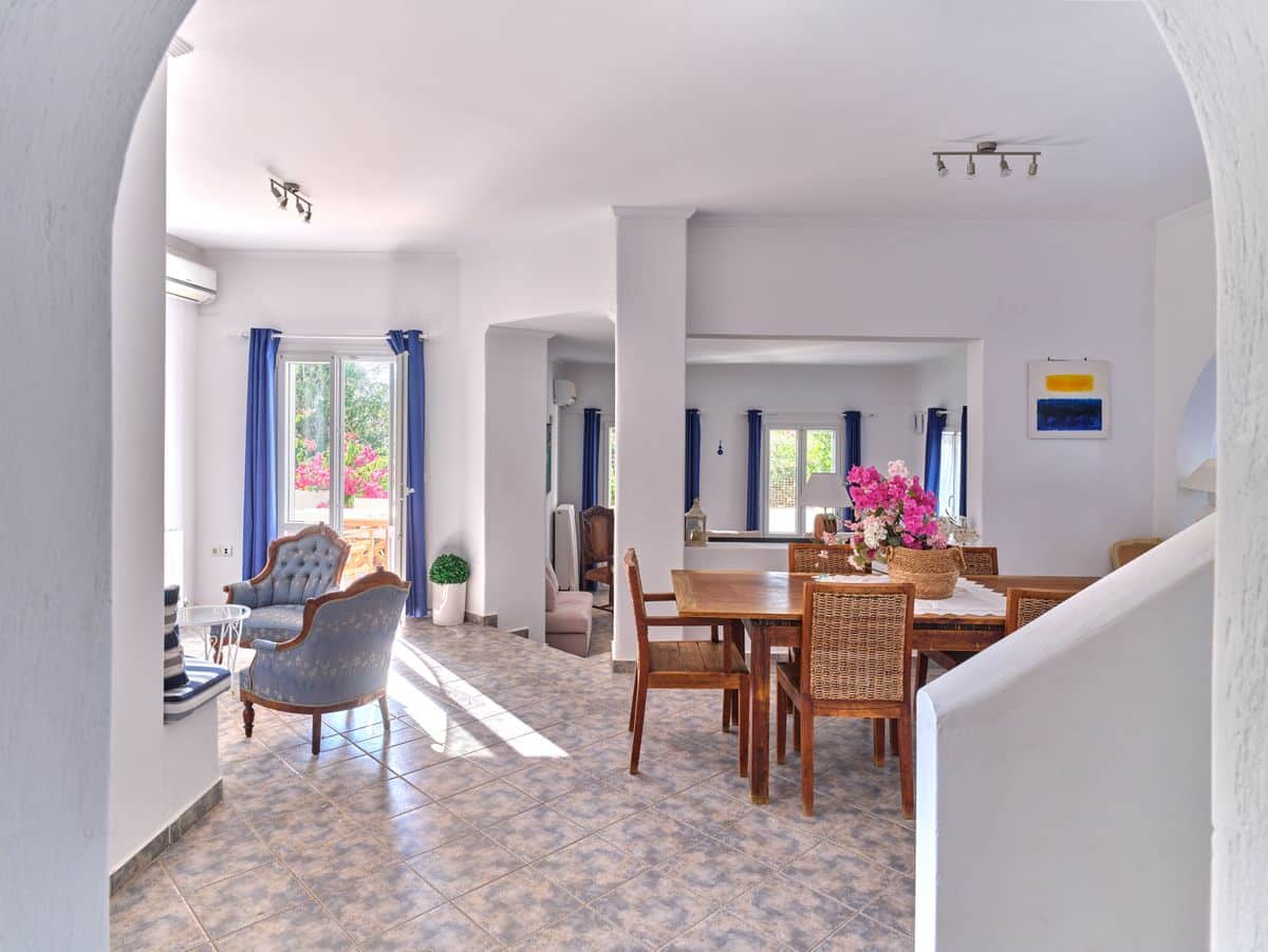 The outdoor areas are ideal for enjoying the Mediterranean lifestyle. A private swimming pool, sun terrace, and outdoor seating spaces offer plenty of room to relax, dine, or gather with family and friends in a calm and scenic setting.