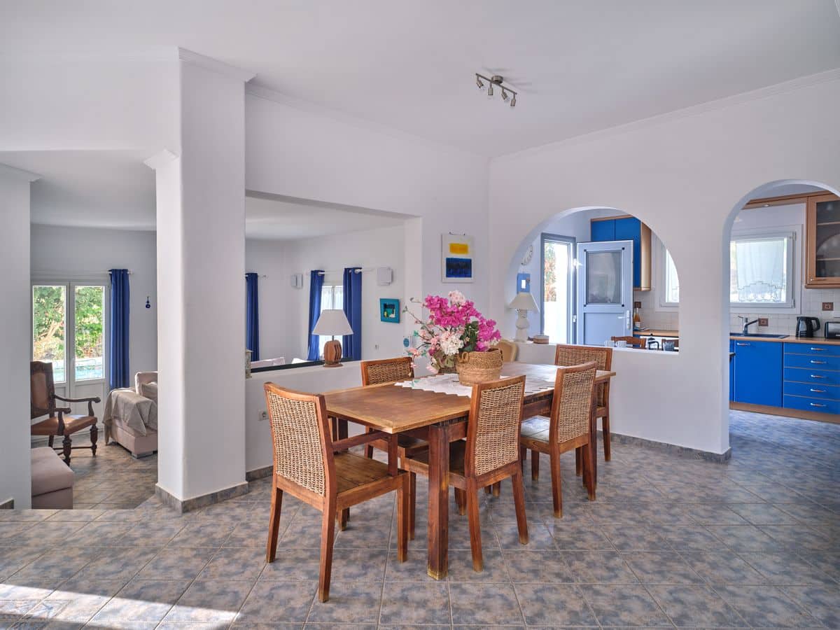 Inside, the villa combines practicality with comfort. A fully equipped kitchen, dining area, and bright living spaces create a functional environment for both everyday living and shared moments. Modern amenities such as WiFi and a washing machine ensure a convenient and effortless stay.