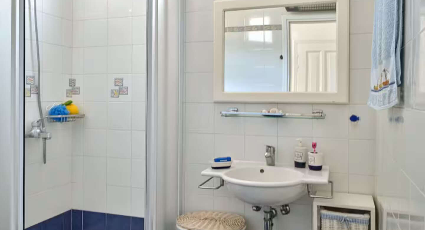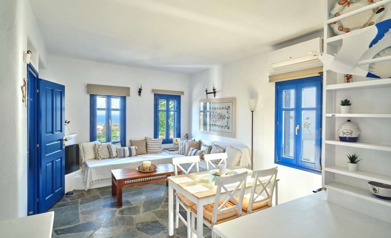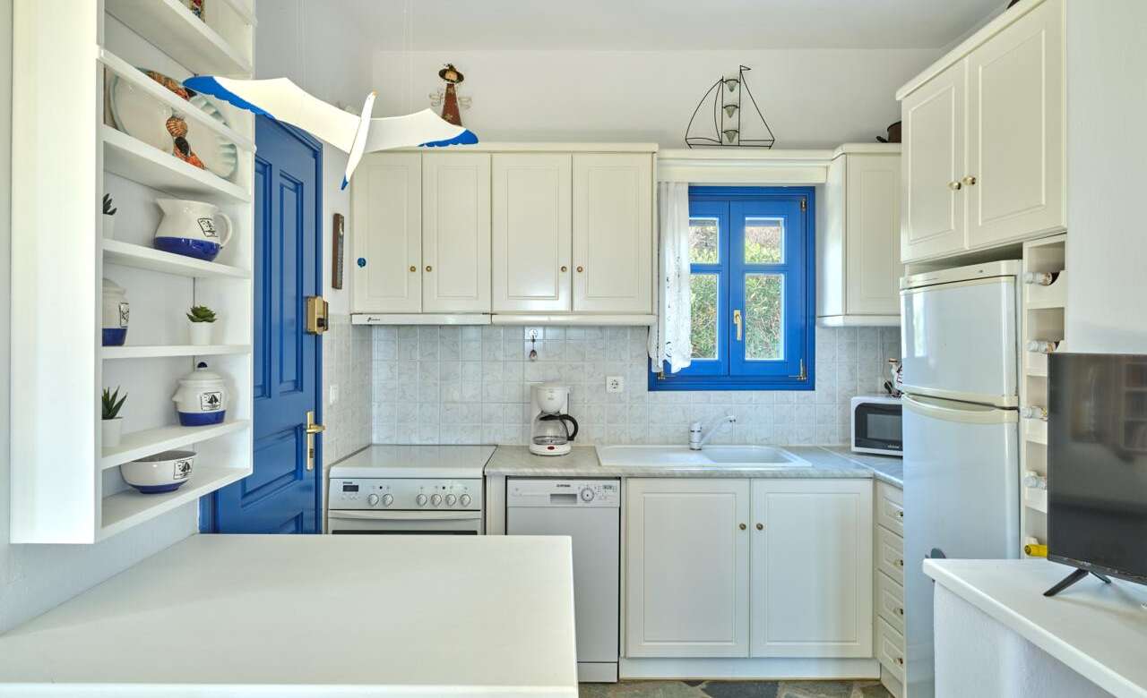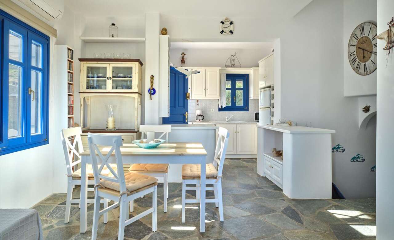 Stepping outside, the private patio offers an ideal spot to take in the stunning sea views. Furnished for comfort, it’s perfect for alfresco dining, morning coffees, or sunset drinks. The house is designed to offer both traditional charm and modern convenience, with air conditioning for comfort, a washing machine for extended stays, solar heating for warm water, and a smoke detector for safety. Fast WiFi ensures seamless connectivity, whether for work or leisure.