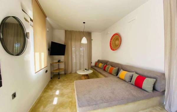 The main house in the ground floor features a fully equipped kitchen, a cozy living room, with direct access to the outdoor courtyard and a guest wc.