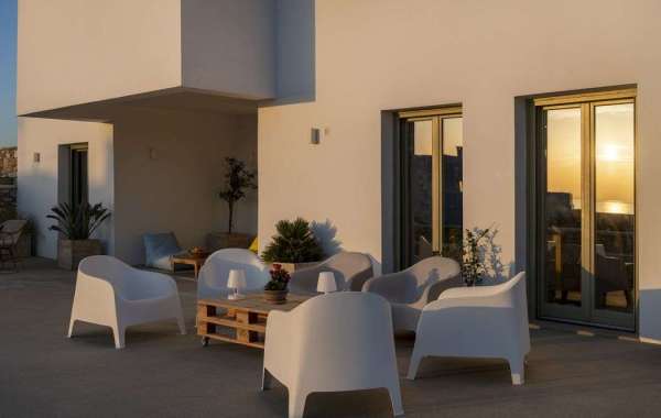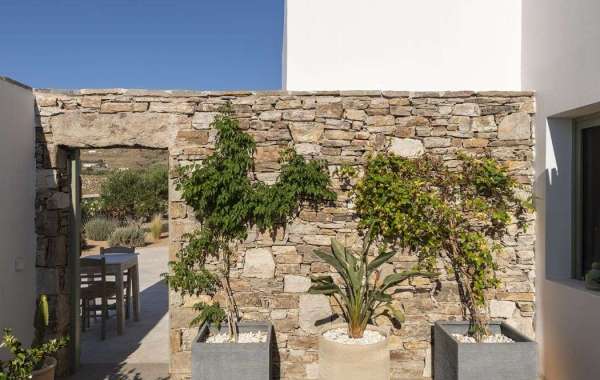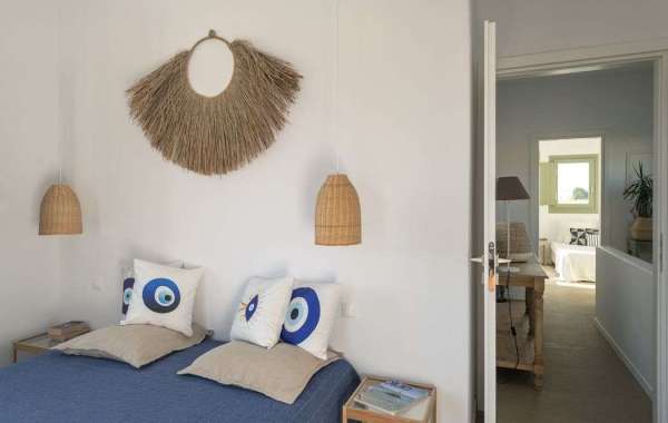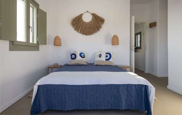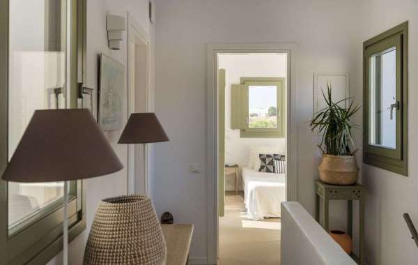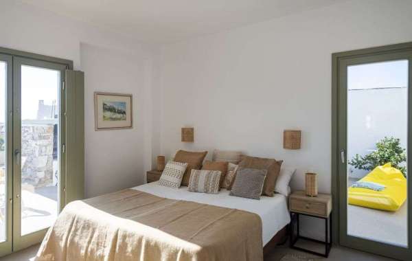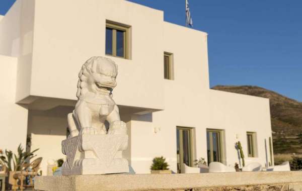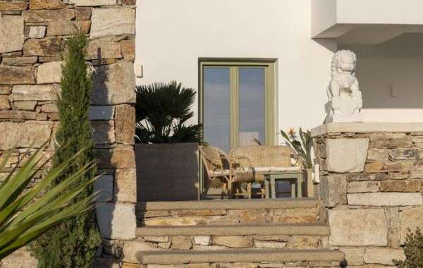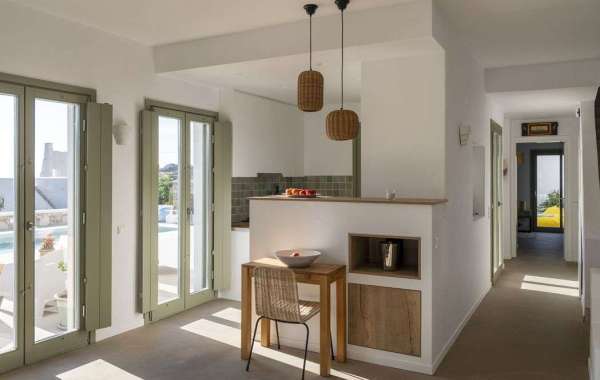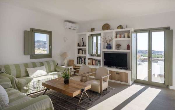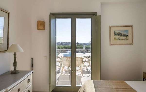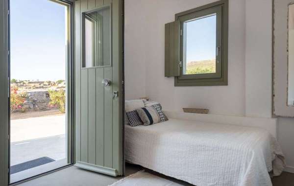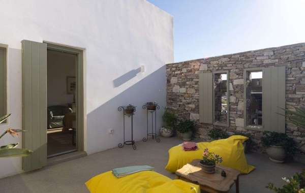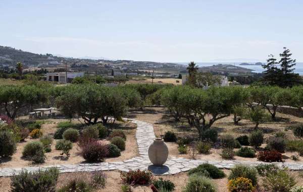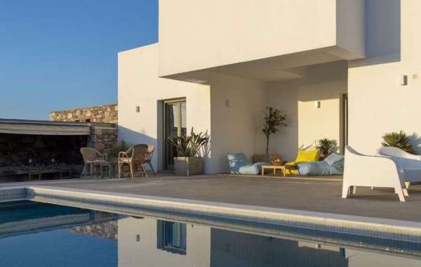 Villa Eloise is a beautiful contemporary house designed by a local well-known architect and situated between the sea and the mountains, located near Paroikia and 15 minutes of a nice walk to the beautiful beach of Parasporos. The property is surrounded by a Mediterranean garden and faces a field of olive trees. The terrace with the swimming pool is the perfect setting for a mind-blowing sunset over the sea and the sailing boats in the beautiful Aegean Sea.