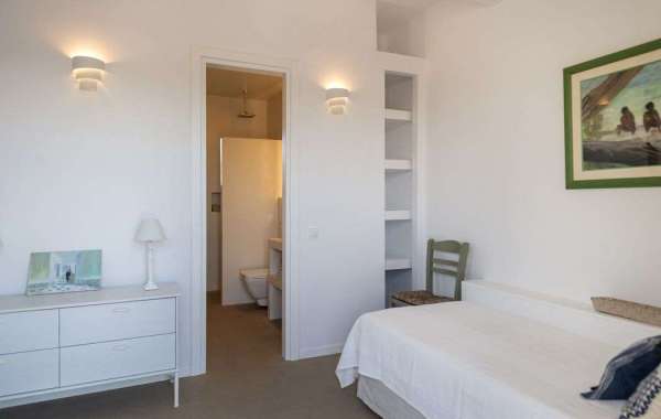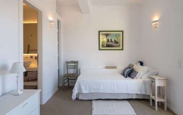 Villa Eloise offers on the ground floor a wide entrance with a seating area, a fully equipped kitchen and a guest wc. The master bedroom is facing the sea and provides direct access to the pool and to a private romantic patio with seating furniture and flowers all around. The en-suite bathroom has an Italian shower and all sanitary facilities. The second room is a guest room with a private entrance and a garden view, equipped with two single beds and private bathroom.