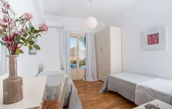 The Villa “Peaceful Queen” in the island of Paros is a private and secluded retreat that offers stunning views of the garden and Naxos island from its infinity pool. Located in the quiet and peaceful area of Tsoukalia, the villa is within walking distance of the famous windsurfing beach. The interior features natural stone elements adding to the rustic and natural charm of the villa. It is the perfect place to relax and unwind for nature lovers and those seeking privacy and good vibes while exploring the island. It is not a fancy villa, but rather a comfortable and cozy place to call home during your stay on the island.